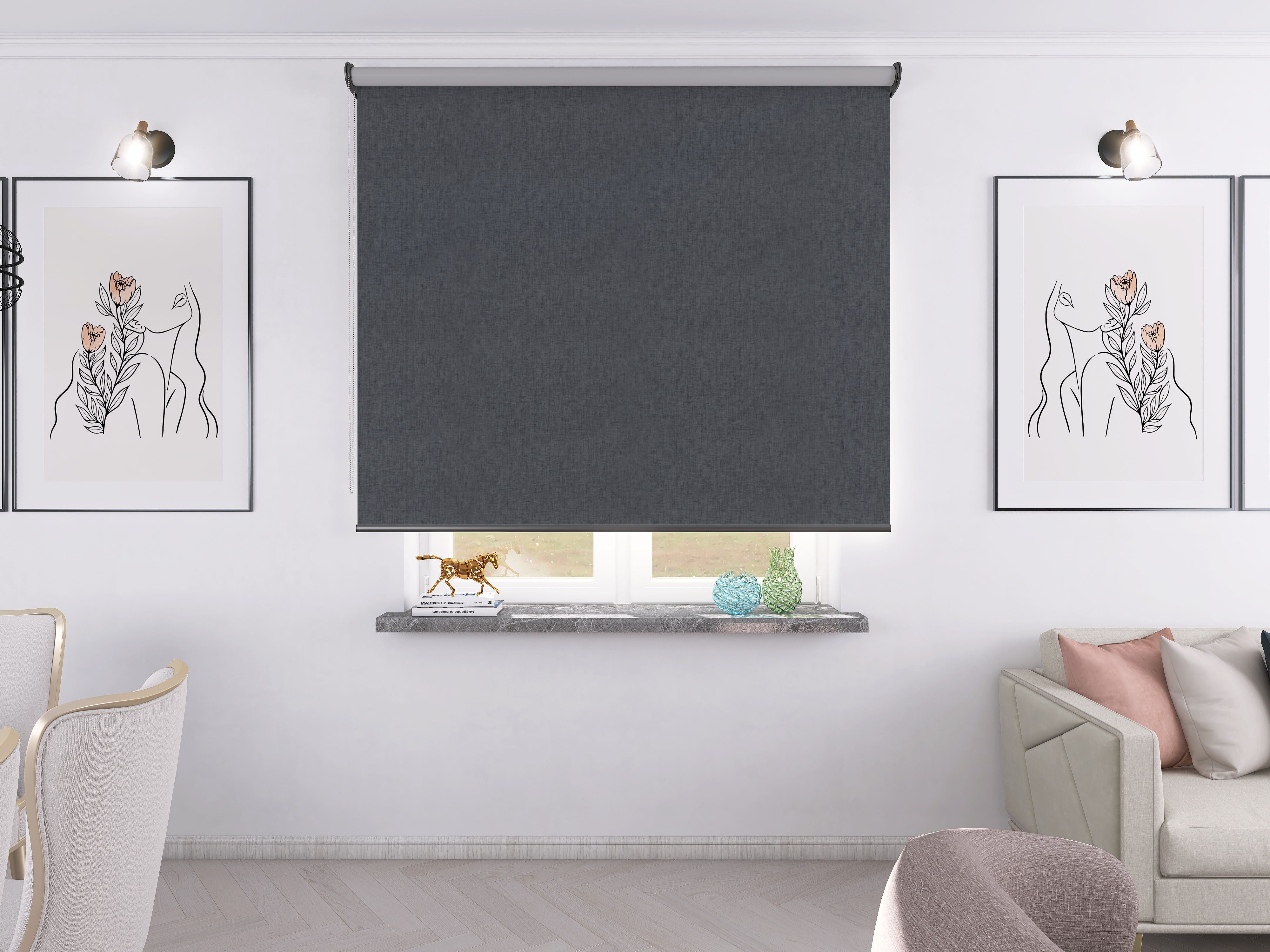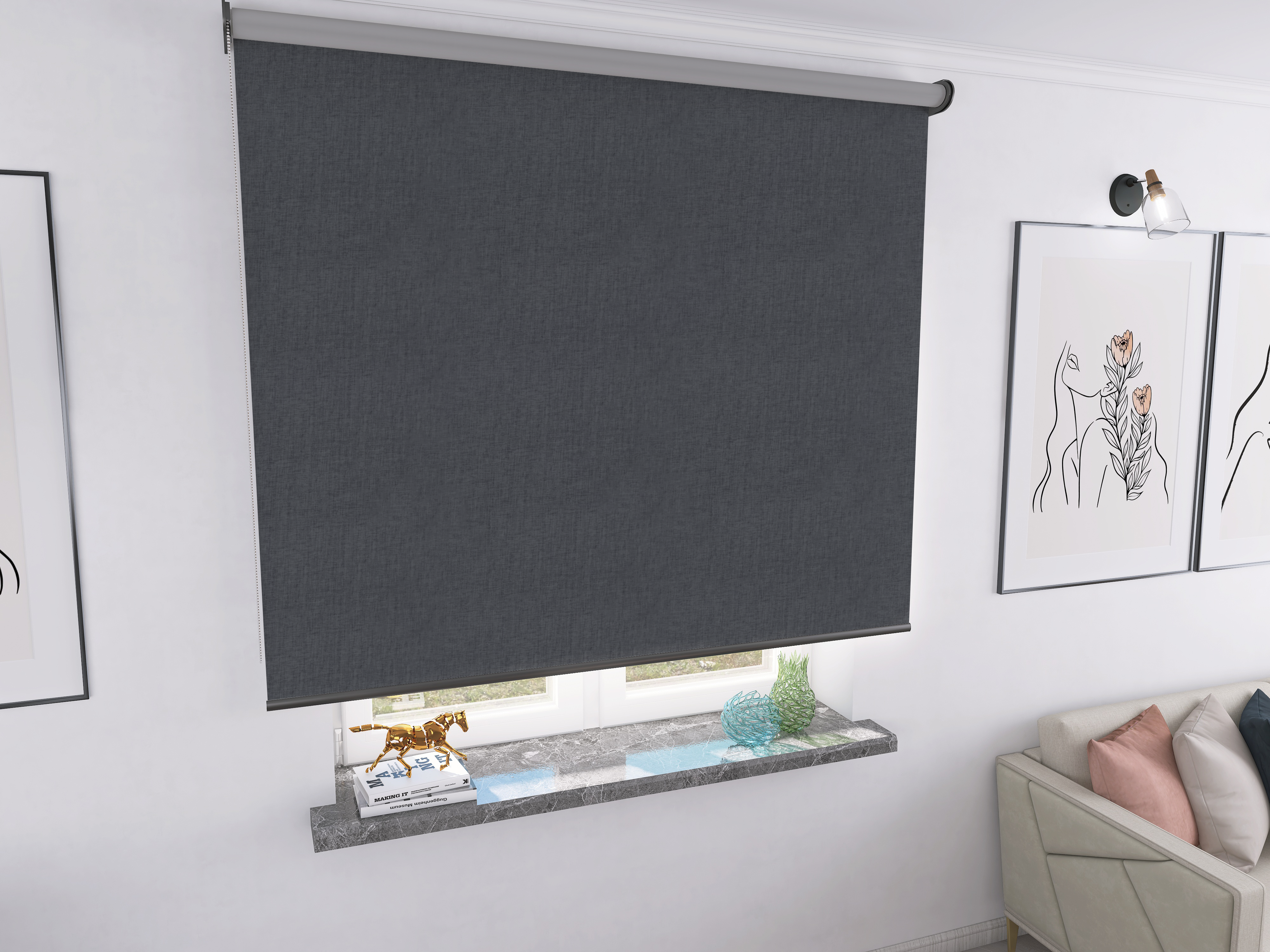 Roleta Concept XL Tkanina Blackout 0018 Ciemny szary melanż – antracytowy osprzęt