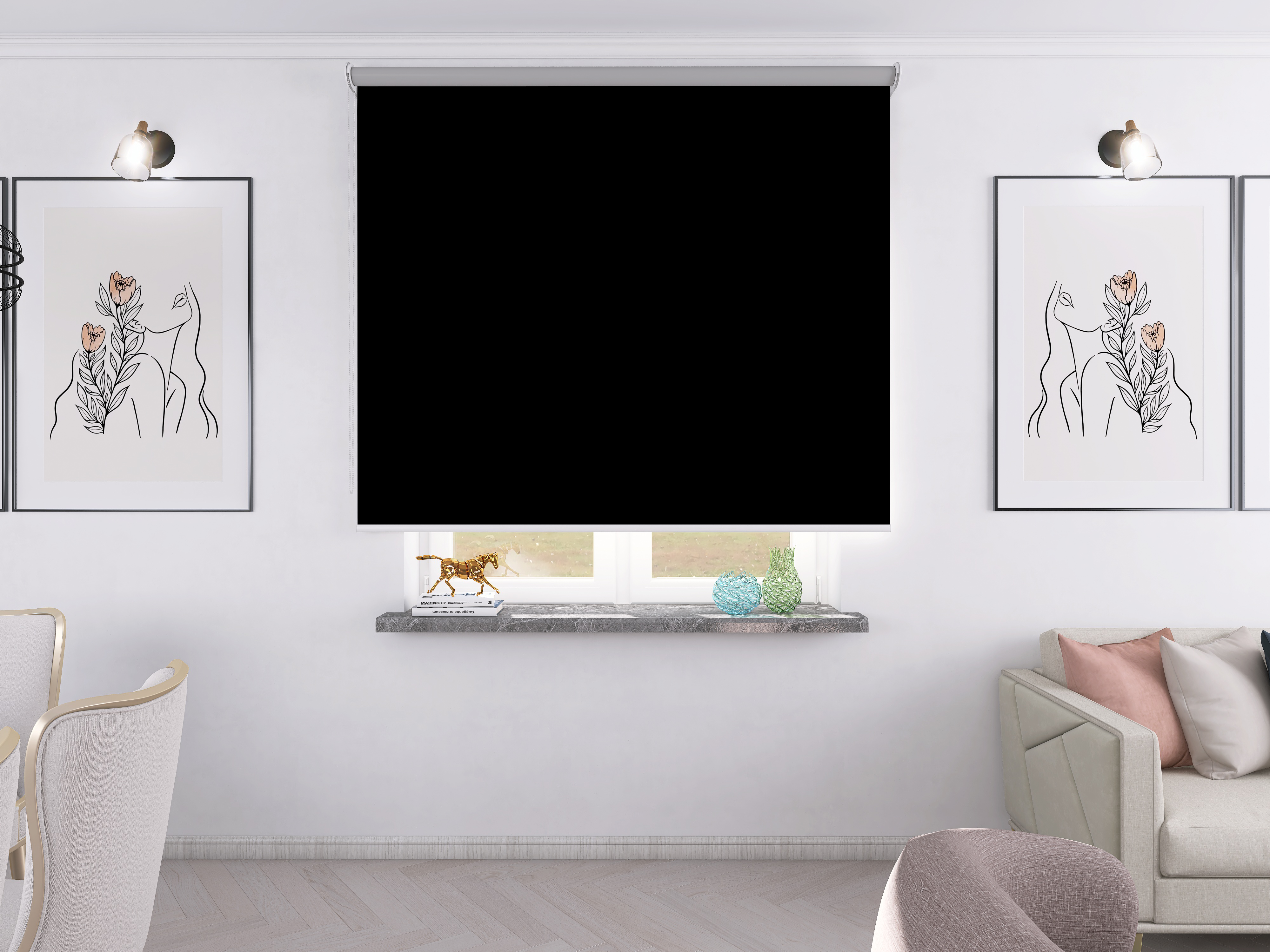 Roleta Concept XL Tkanina Blackout 305 Czarny gładki – biały osprzęt