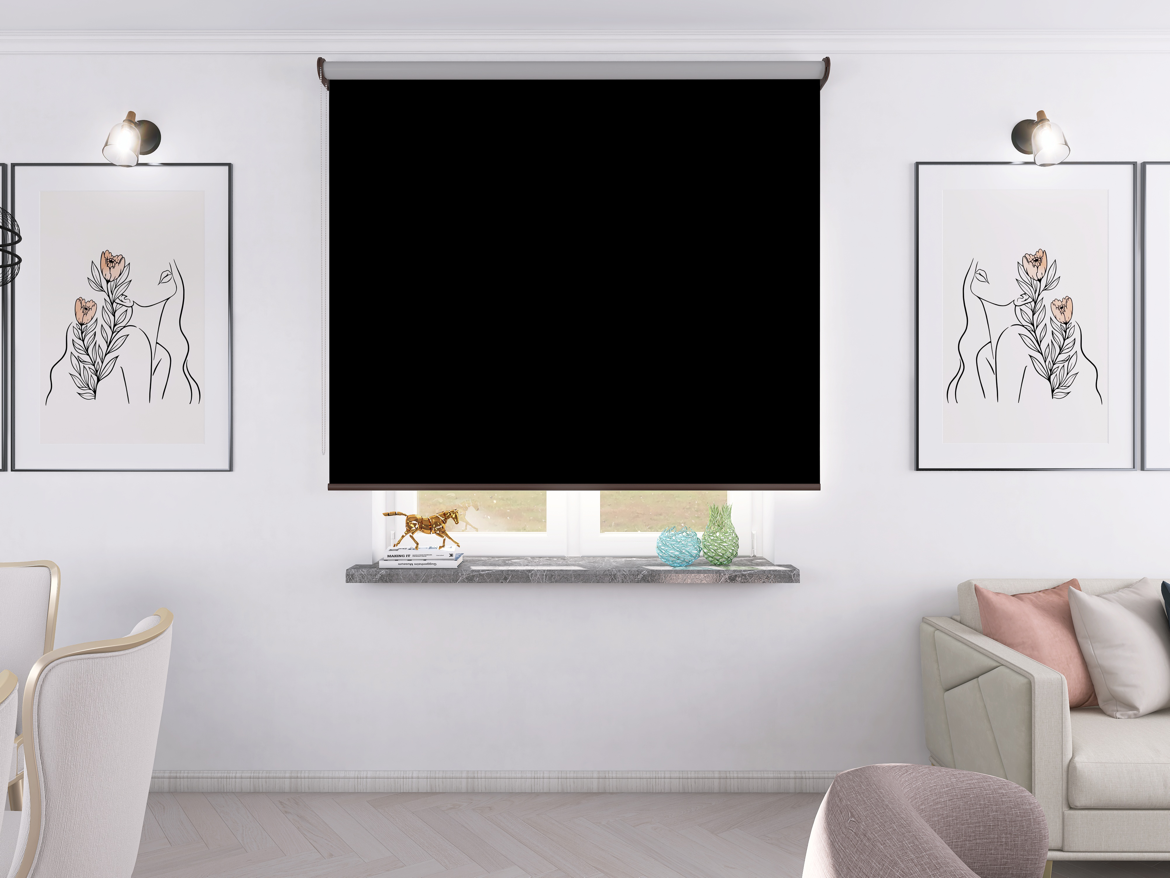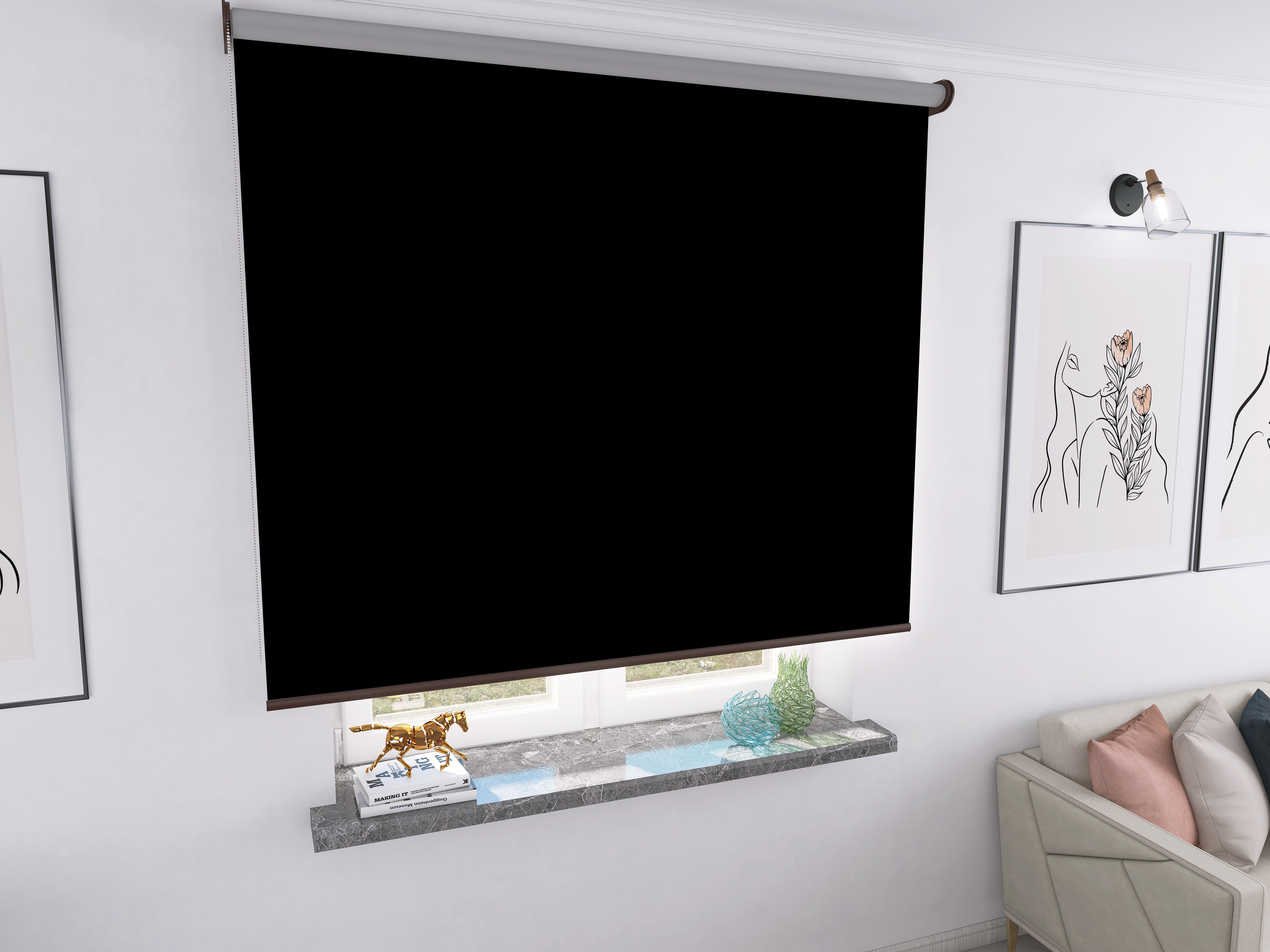 Roleta Concept XL Tkanina Blackout 305 Czarny gładki – brązowy osprzęt