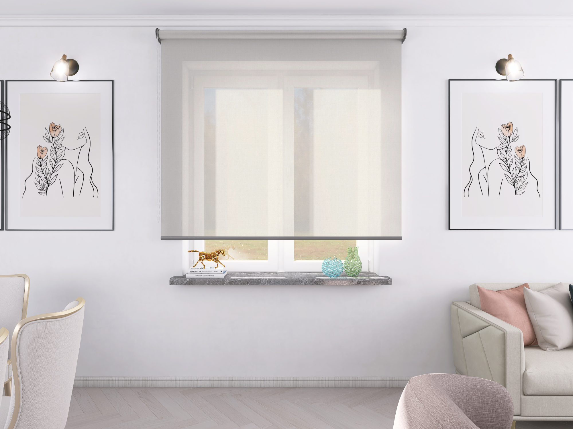 Roleta Concept XL Tkanina Diego 2079 Naturalny Krem - antracytowy osprzęt