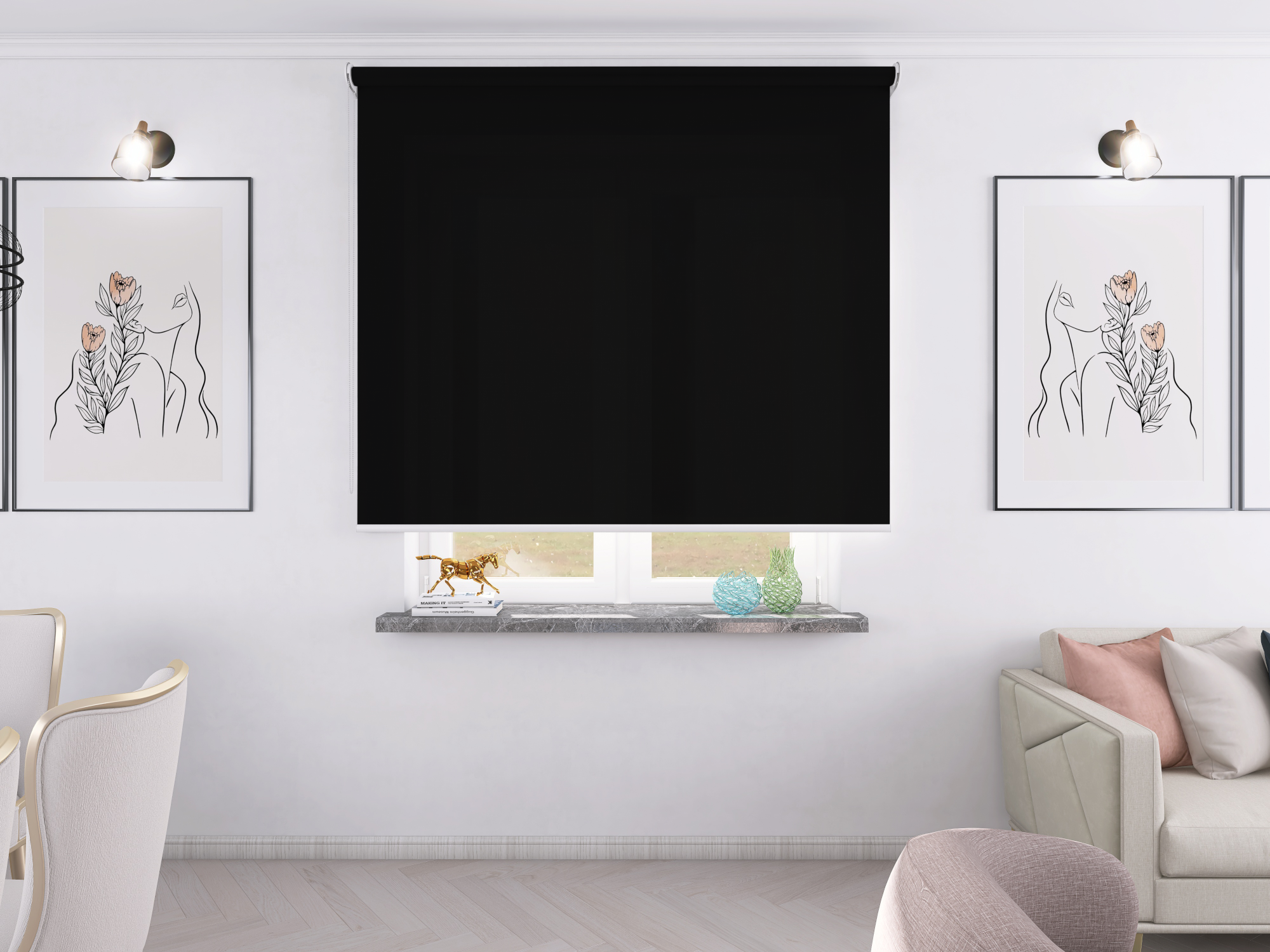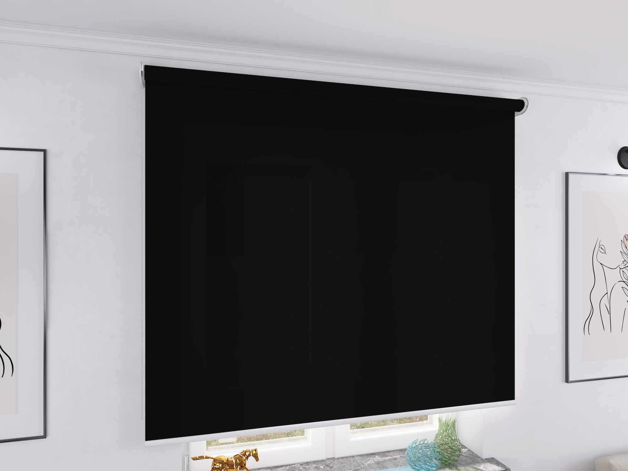 Roleta Concept XL Tkanina Diego 753 Głęboka Czerń - biały osprzęt