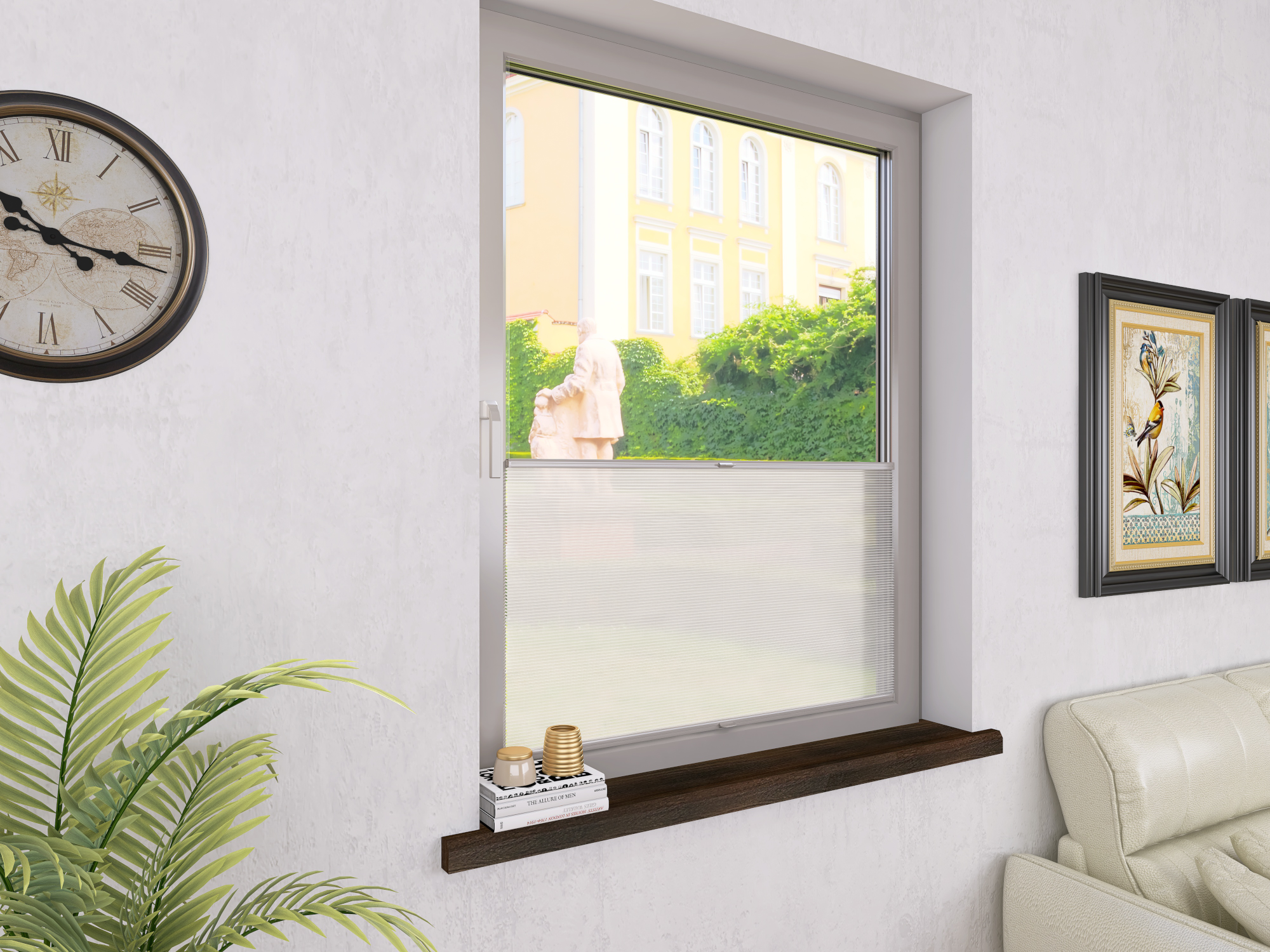 DIEGO – lekka tkanina poliestrowa (153 g/m²) o trwałych kolorach i przepuszczalności światła 28–48%. Plisowane lamelki (20 mm) nadają jej wyjątkowy wygląd, a delikatna grubość 0,4 mm sprawia, że jest subtelna i elegancka.