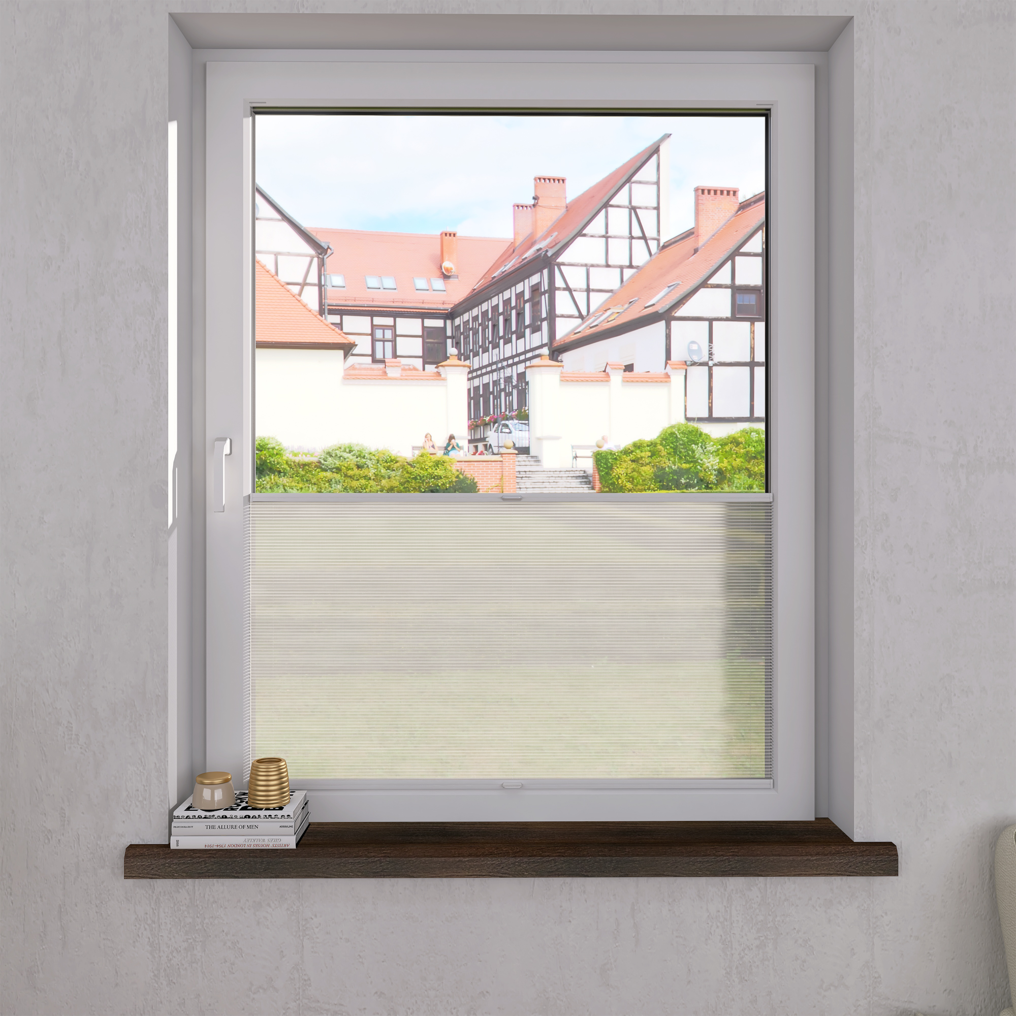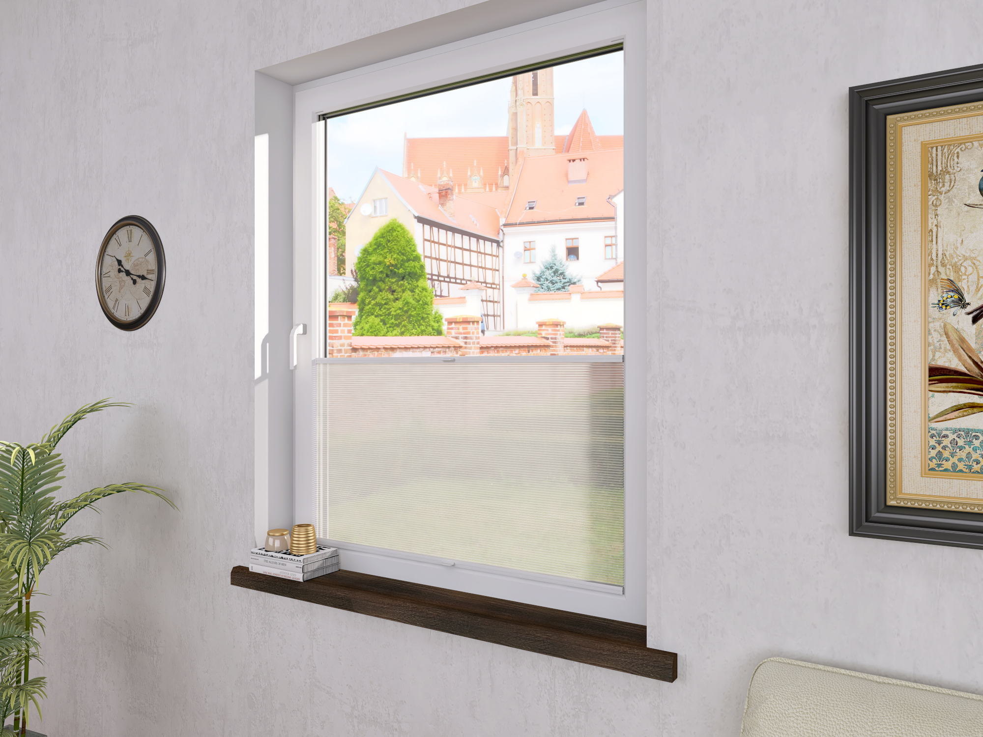 DIEGO – lekka tkanina poliestrowa (153 g/m²) o trwałych kolorach i przepuszczalności światła 28–48%. Plisowane lamelki (20 mm) nadają jej wyjątkowy wygląd, a delikatna grubość 0,4 mm sprawia, że jest subtelna i elegancka.