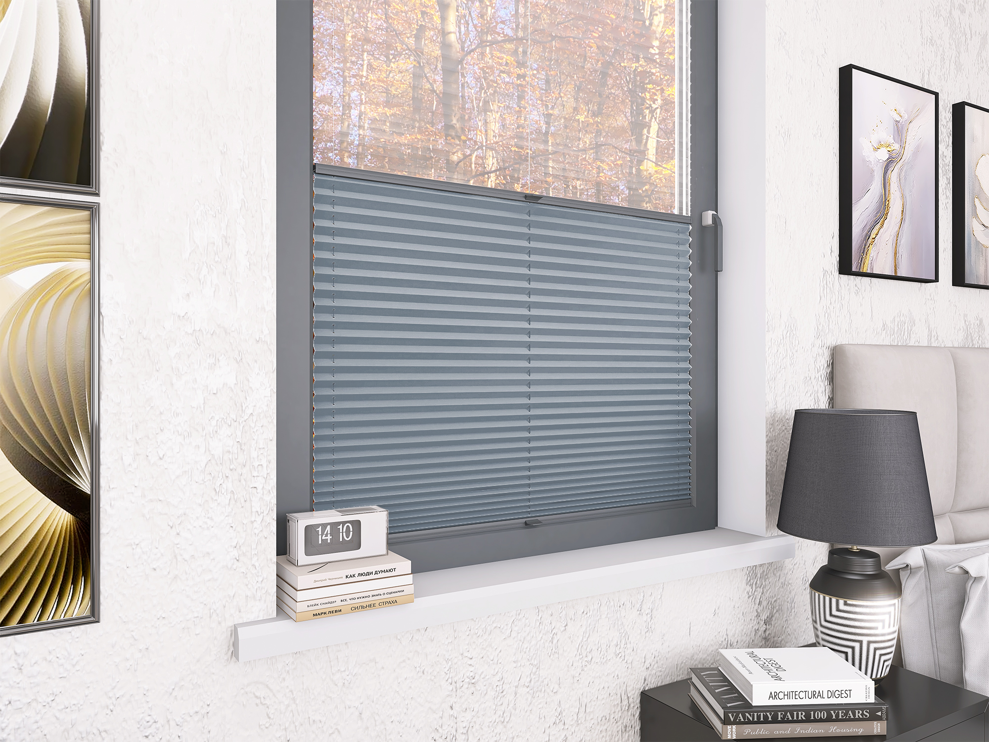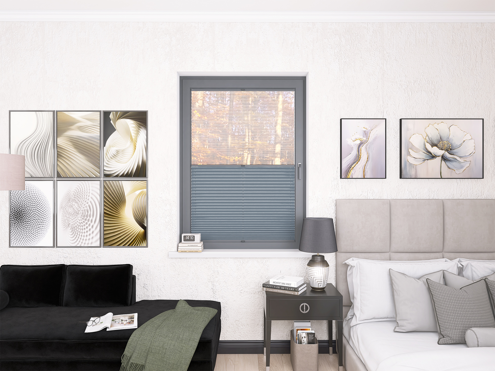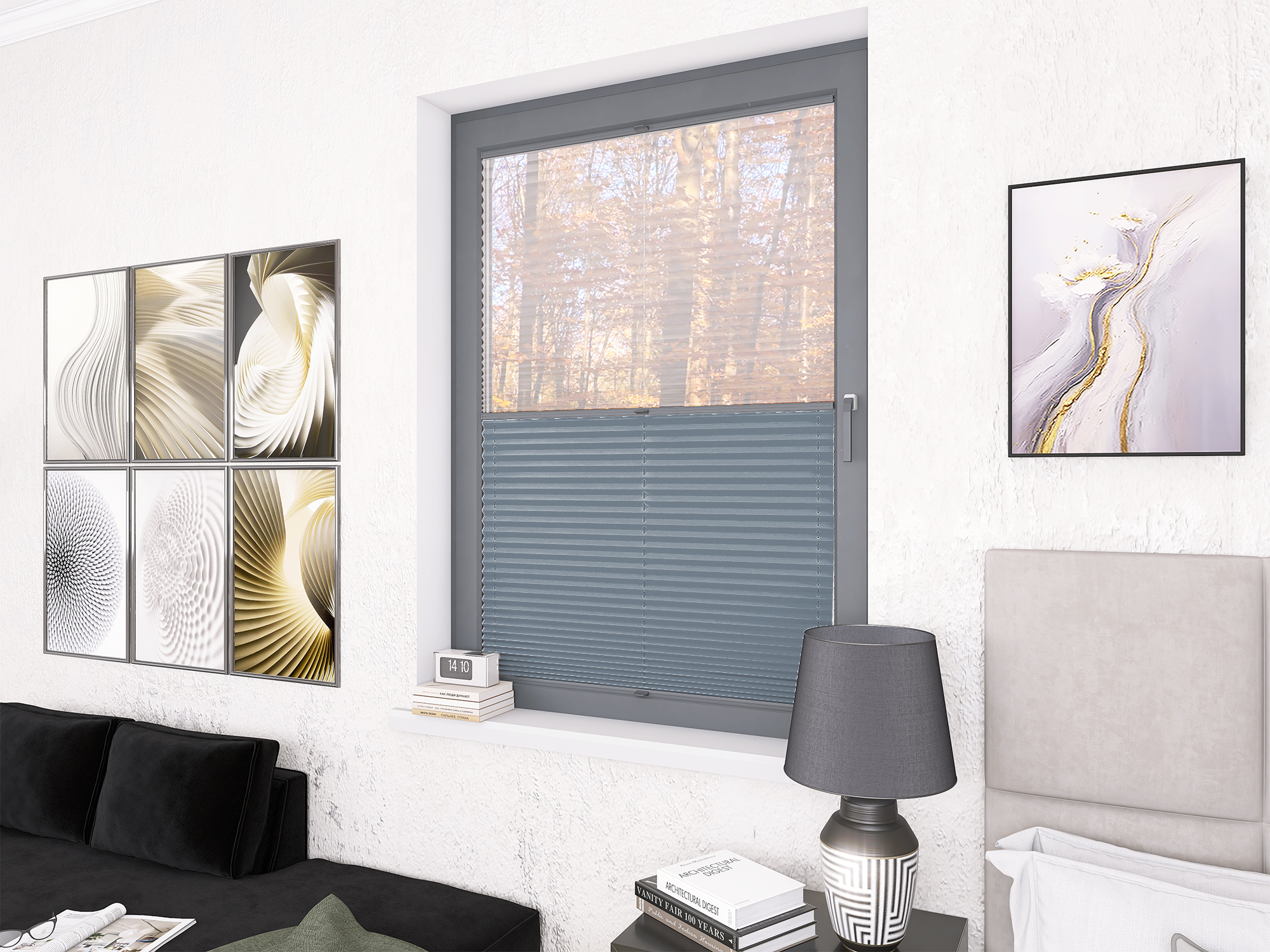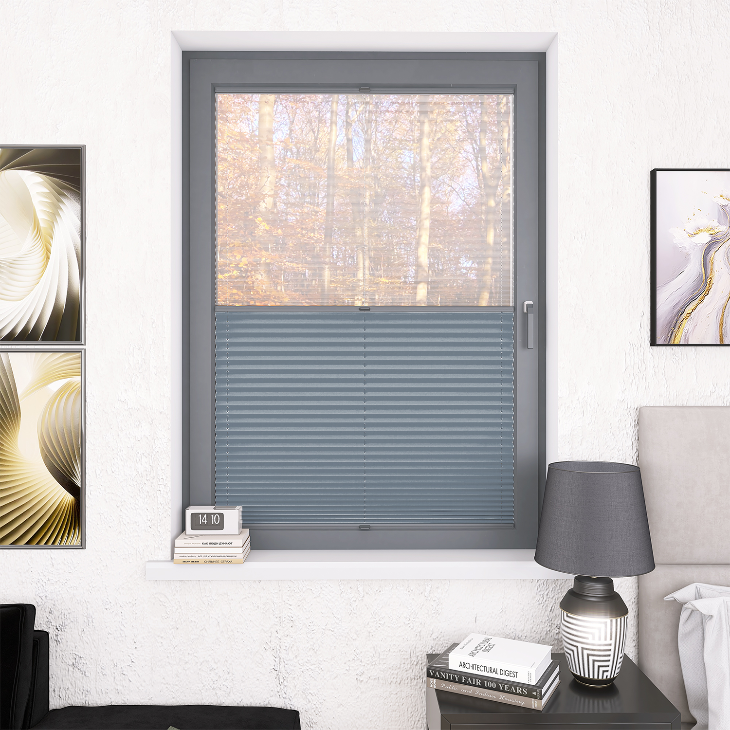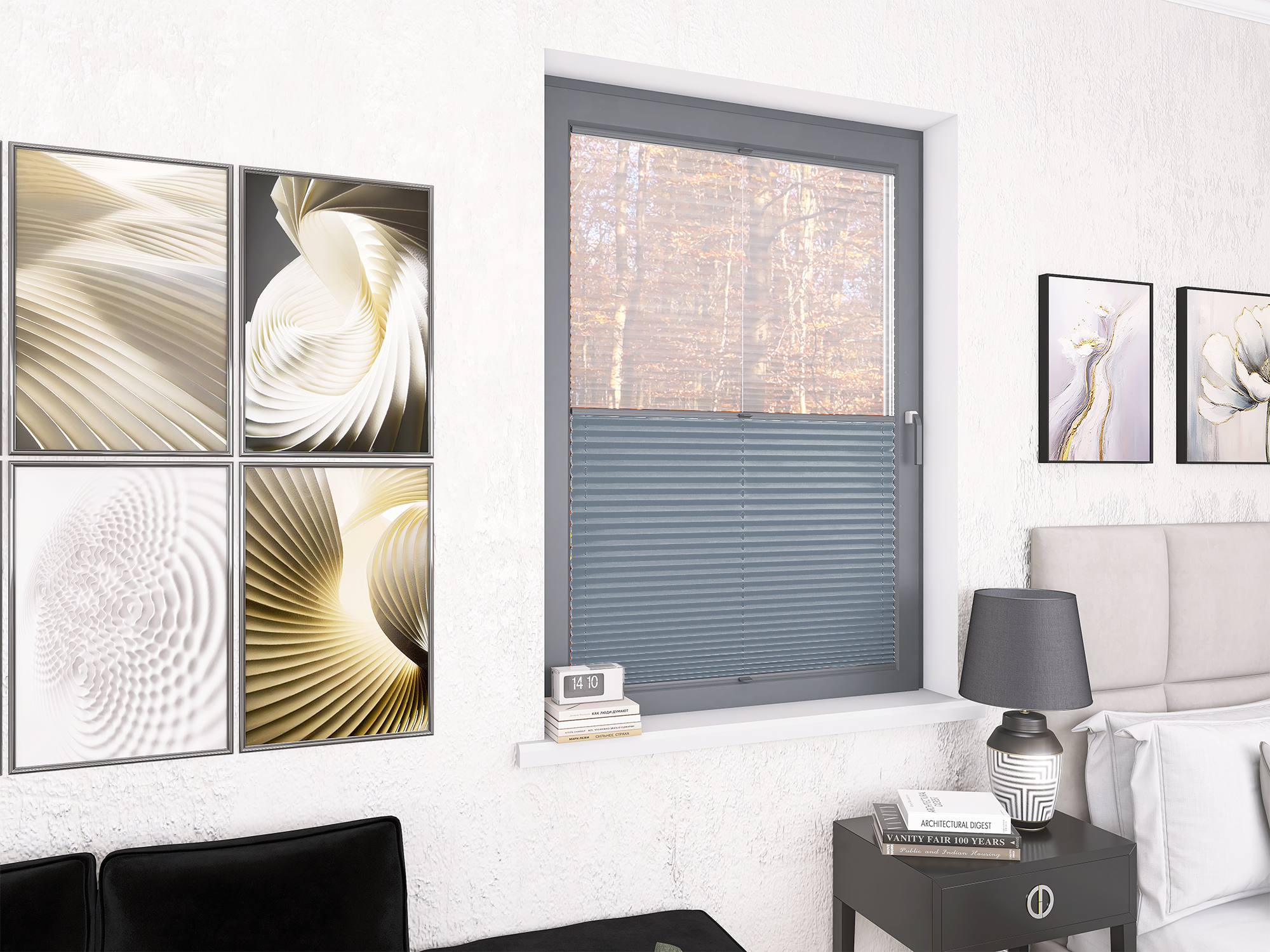 Roleta Plisowana 510 Stalowy Błękit + Firana - Profil Vegas Antracyt