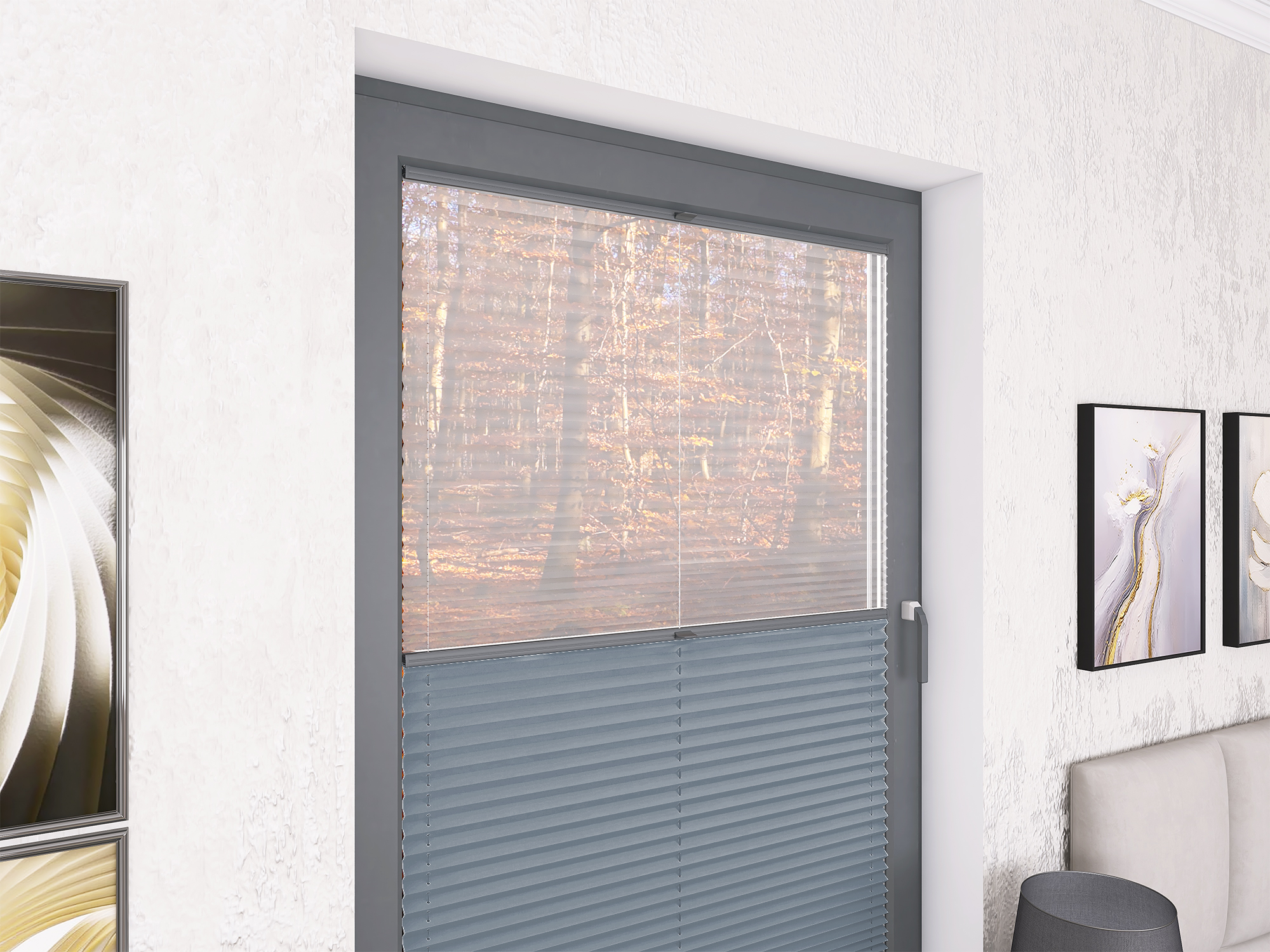 DIEGO – lekka tkanina poliestrowa (153 g/m²) o trwałych kolorach i przepuszczalności światła 28–48%. Plisowane lamelki (20 mm) nadają jej wyjątkowy wygląd, a delikatna grubość 0,4 mm sprawia, że jest subtelna i elegancka.
