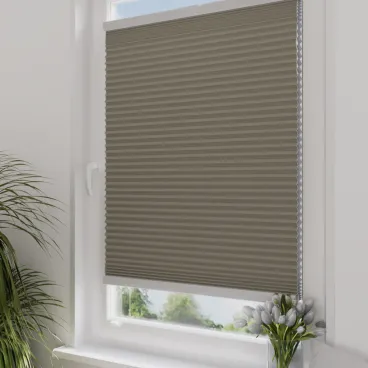 DIEGO – lekka tkanina poliestrowa (153 g/m²) o trwałych kolorach i przepuszczalności światła 28–48%. Plisowane lamelki (20 mm) nadają jej wyjątkowy wygląd, a delikatna grubość 0,4 mm sprawia, że jest subtelna i elegancka.