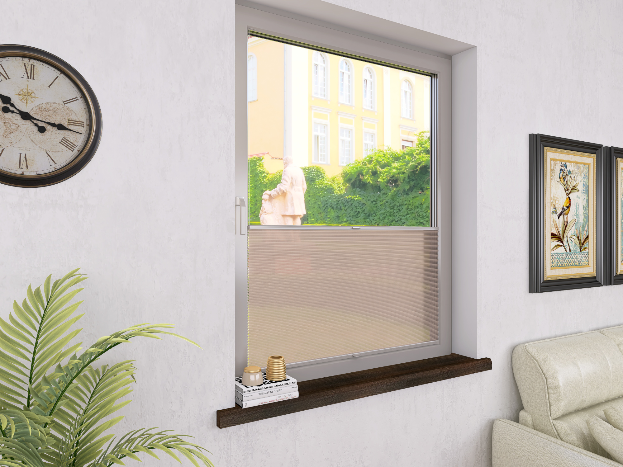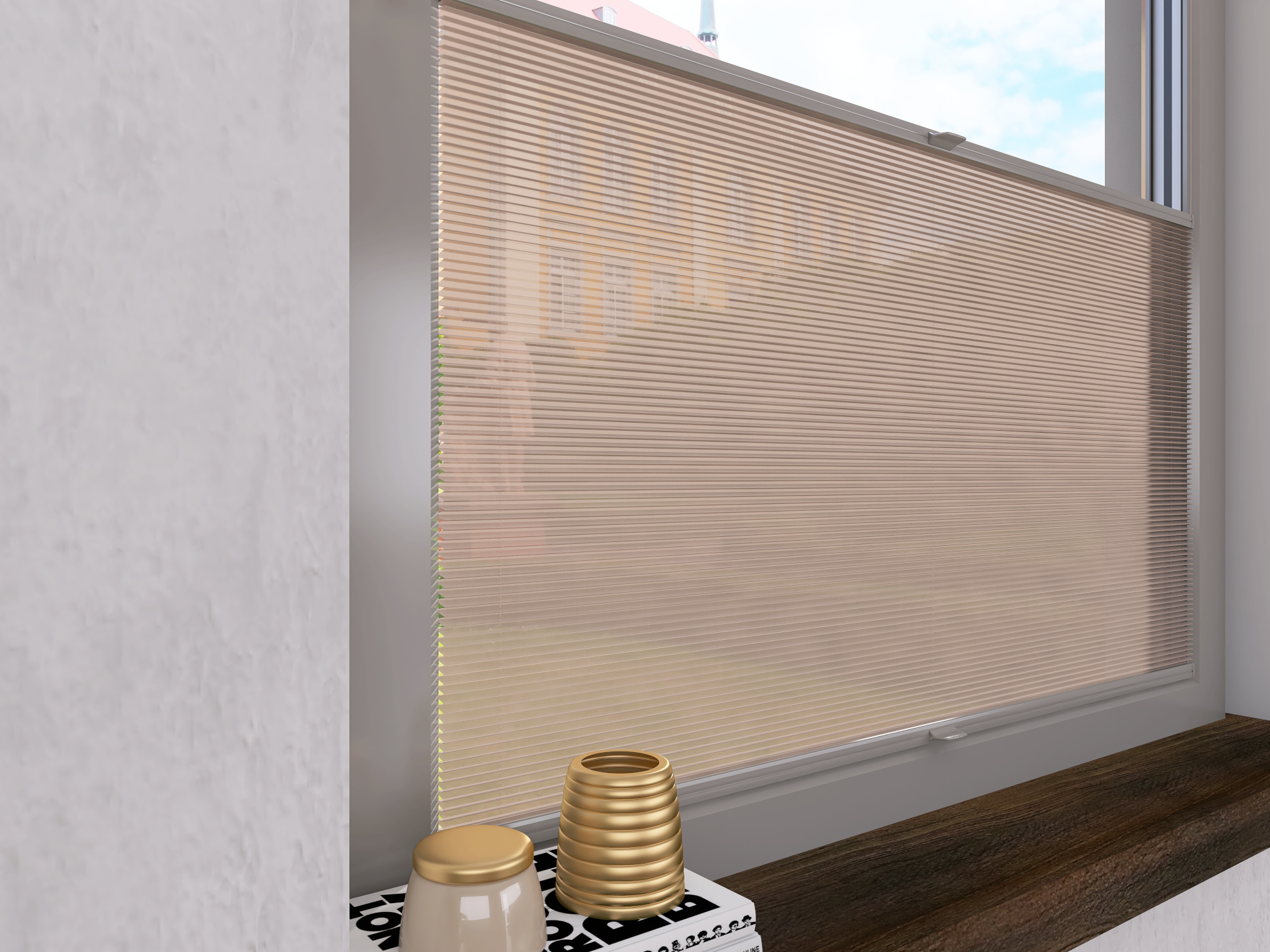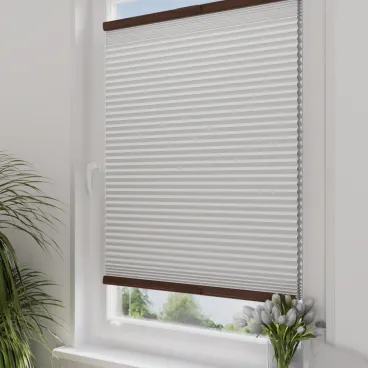 DIEGO – lekka tkanina poliestrowa (153 g/m²) o trwałych kolorach i przepuszczalności światła 28–48%. Plisowane lamelki (20 mm) nadają jej wyjątkowy wygląd, a delikatna grubość 0,4 mm sprawia, że jest subtelna i elegancka.