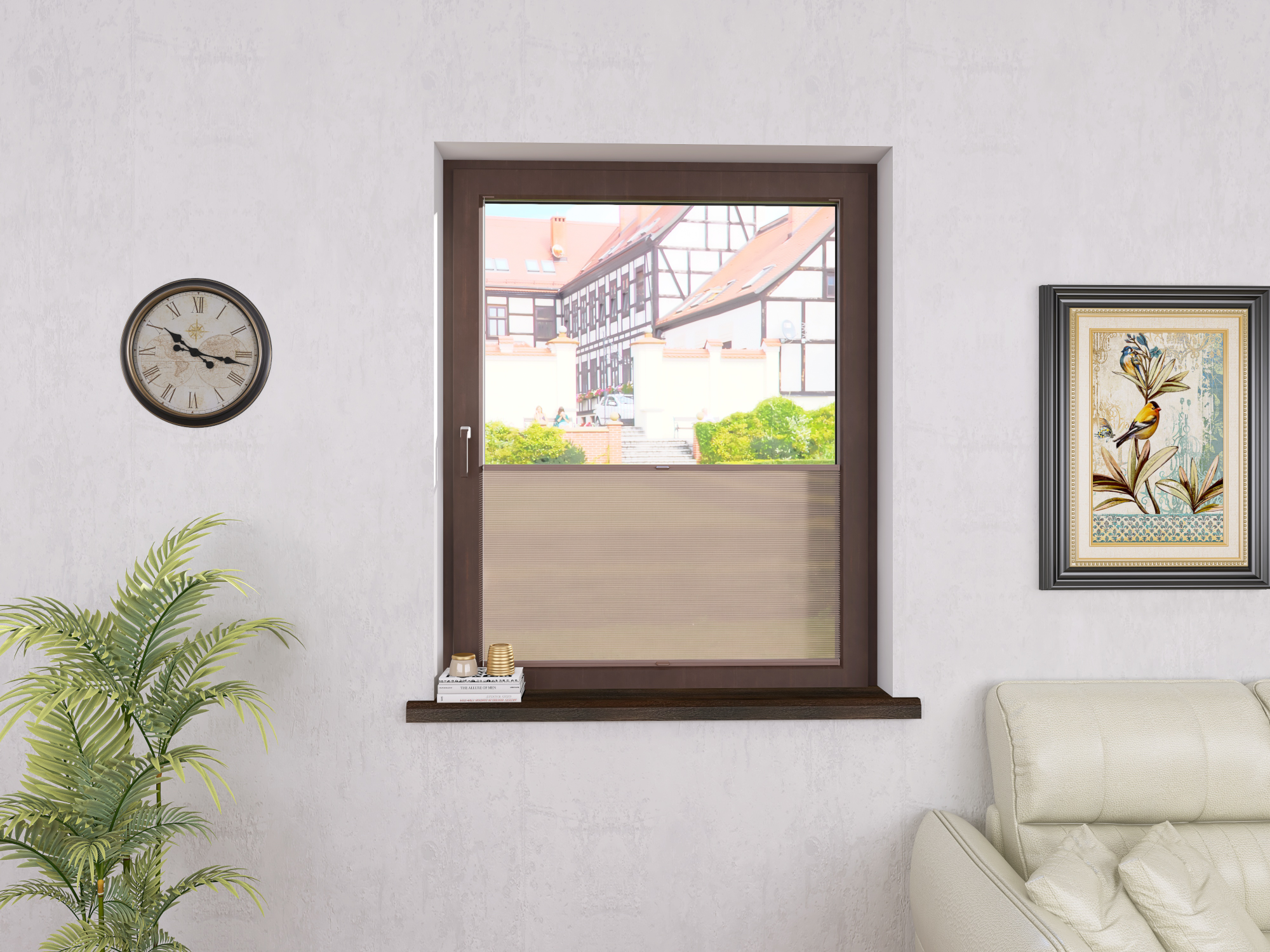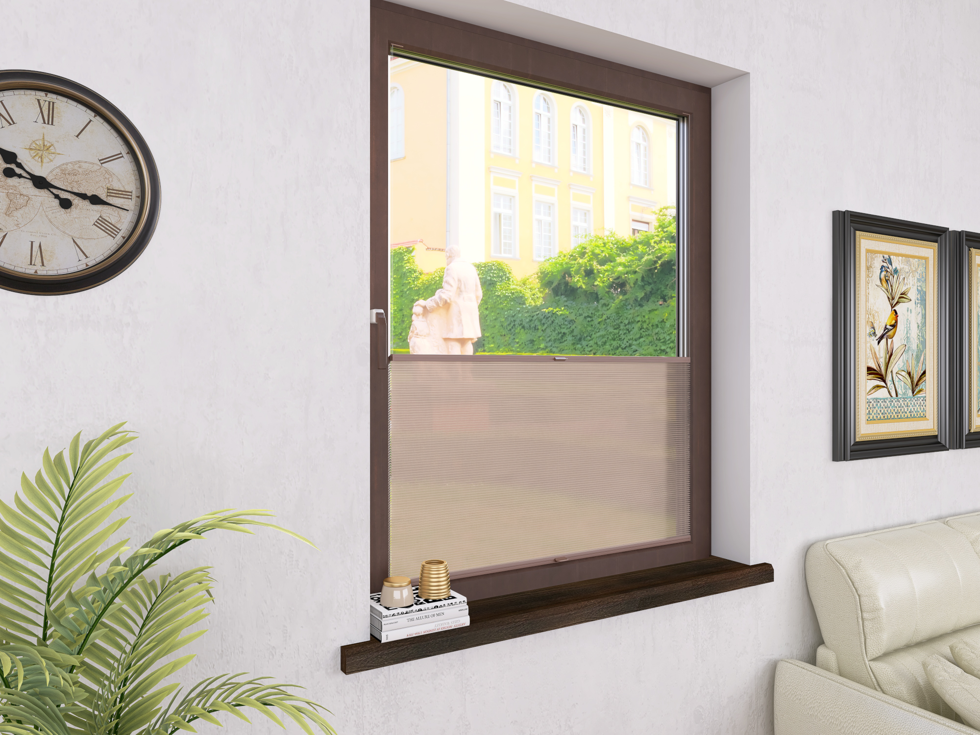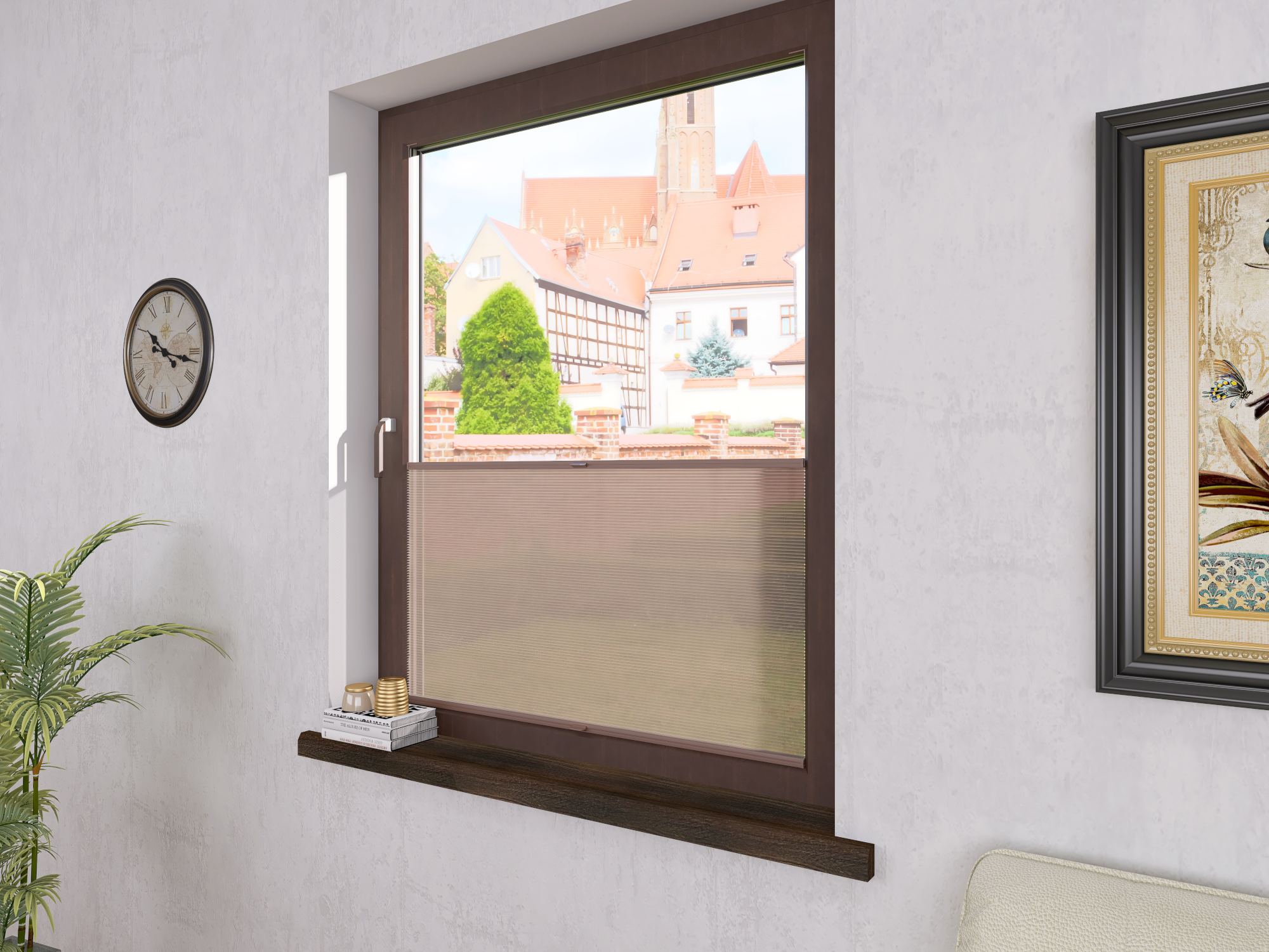 DIEGO – lekka tkanina poliestrowa (153 g/m²) o trwałych kolorach i przepuszczalności światła 28–48%. Plisowane lamelki (20 mm) nadają jej wyjątkowy wygląd, a delikatna grubość 0,4 mm sprawia, że jest subtelna i elegancka.