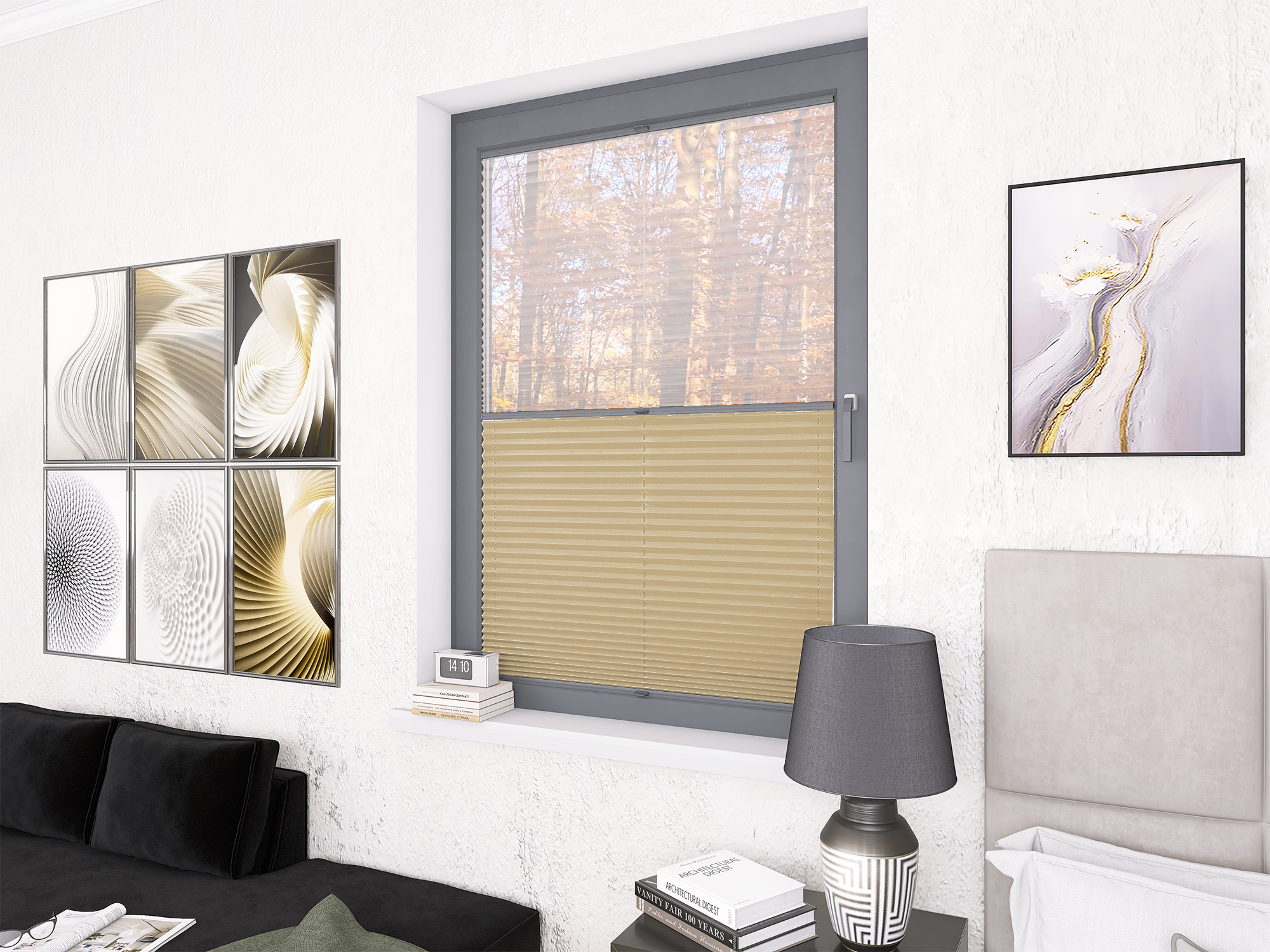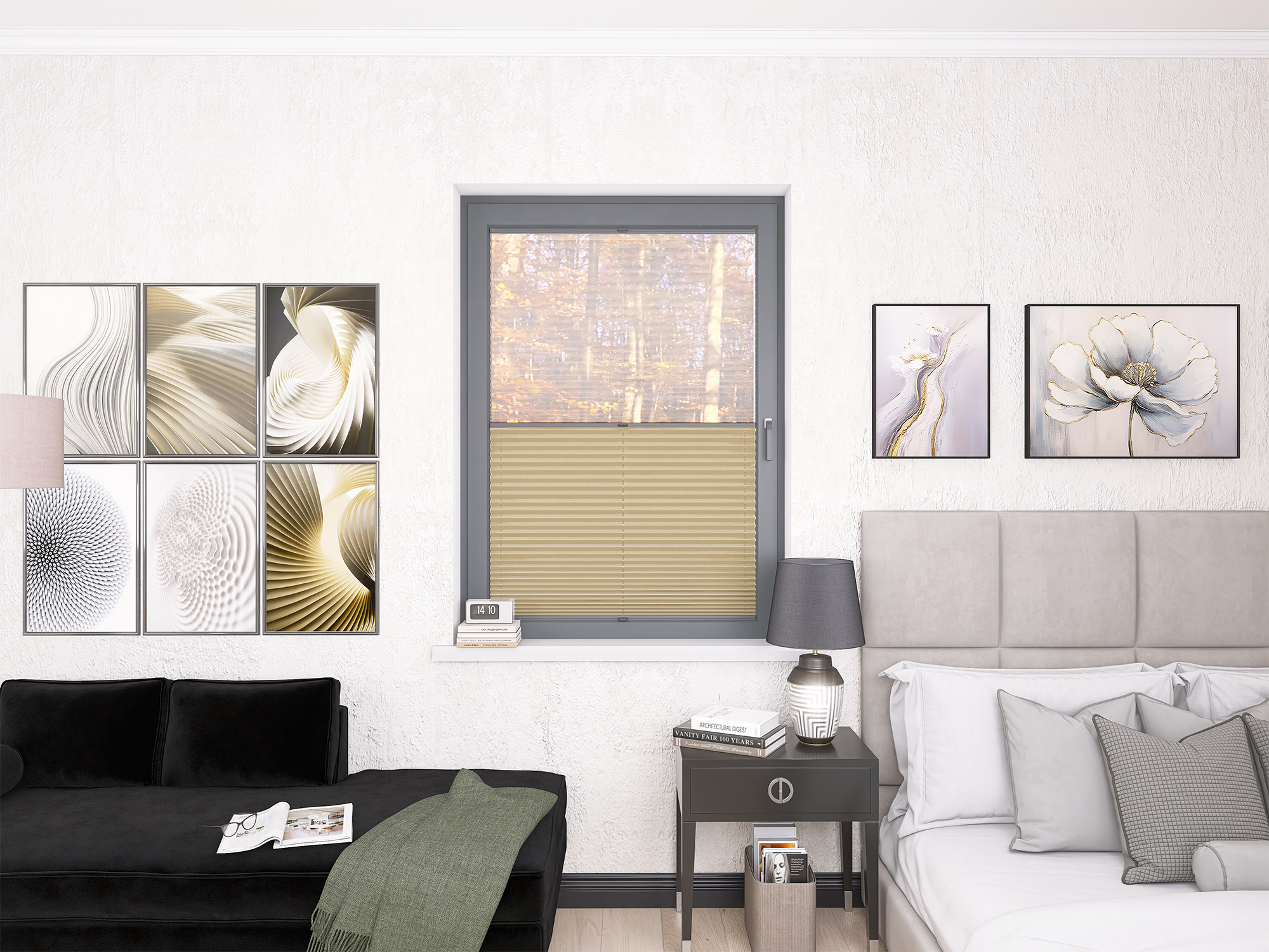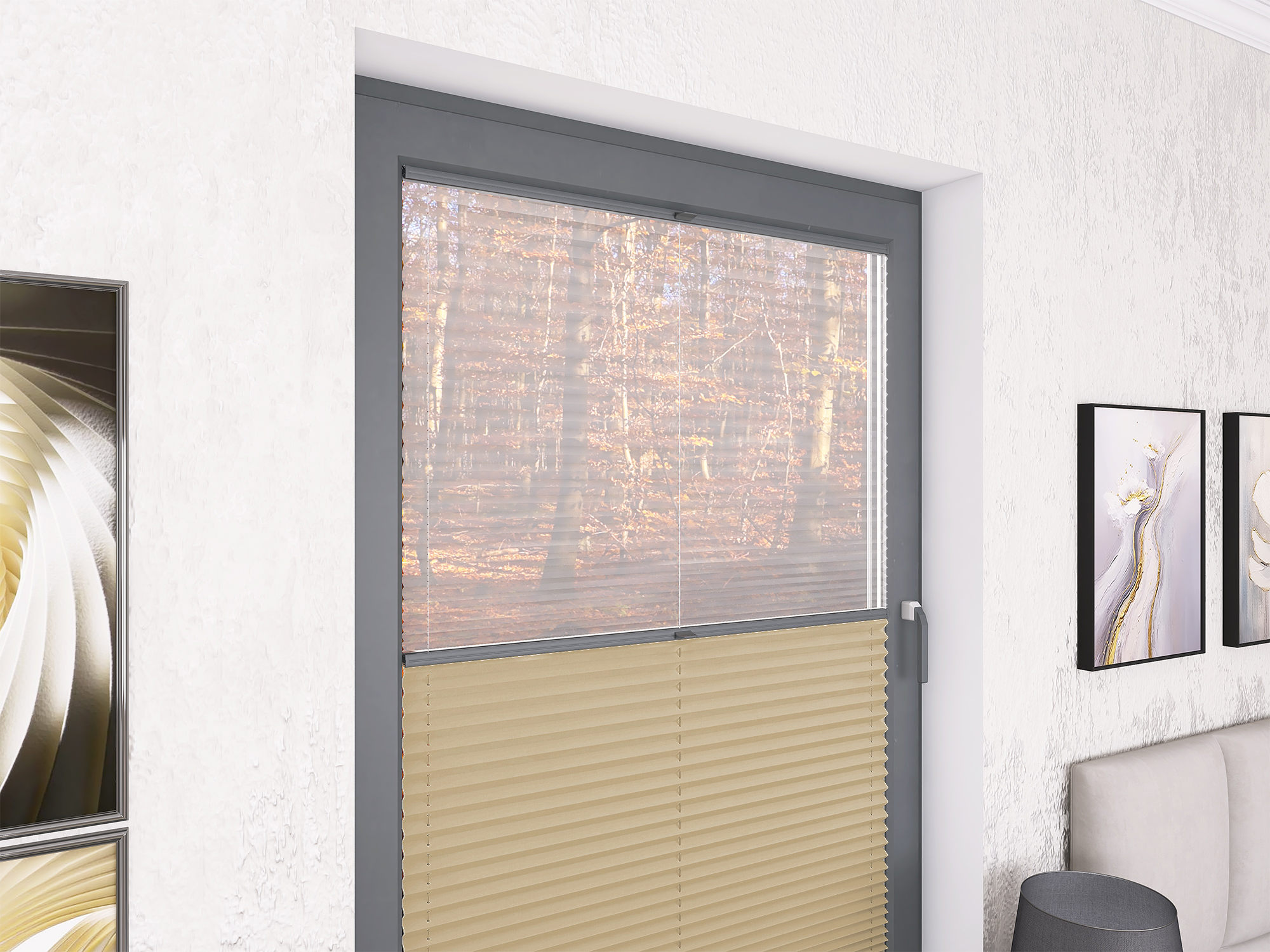 Roleta Plisowana 668 Kremowy Beż + Firana - Profil Vegas Antracyt