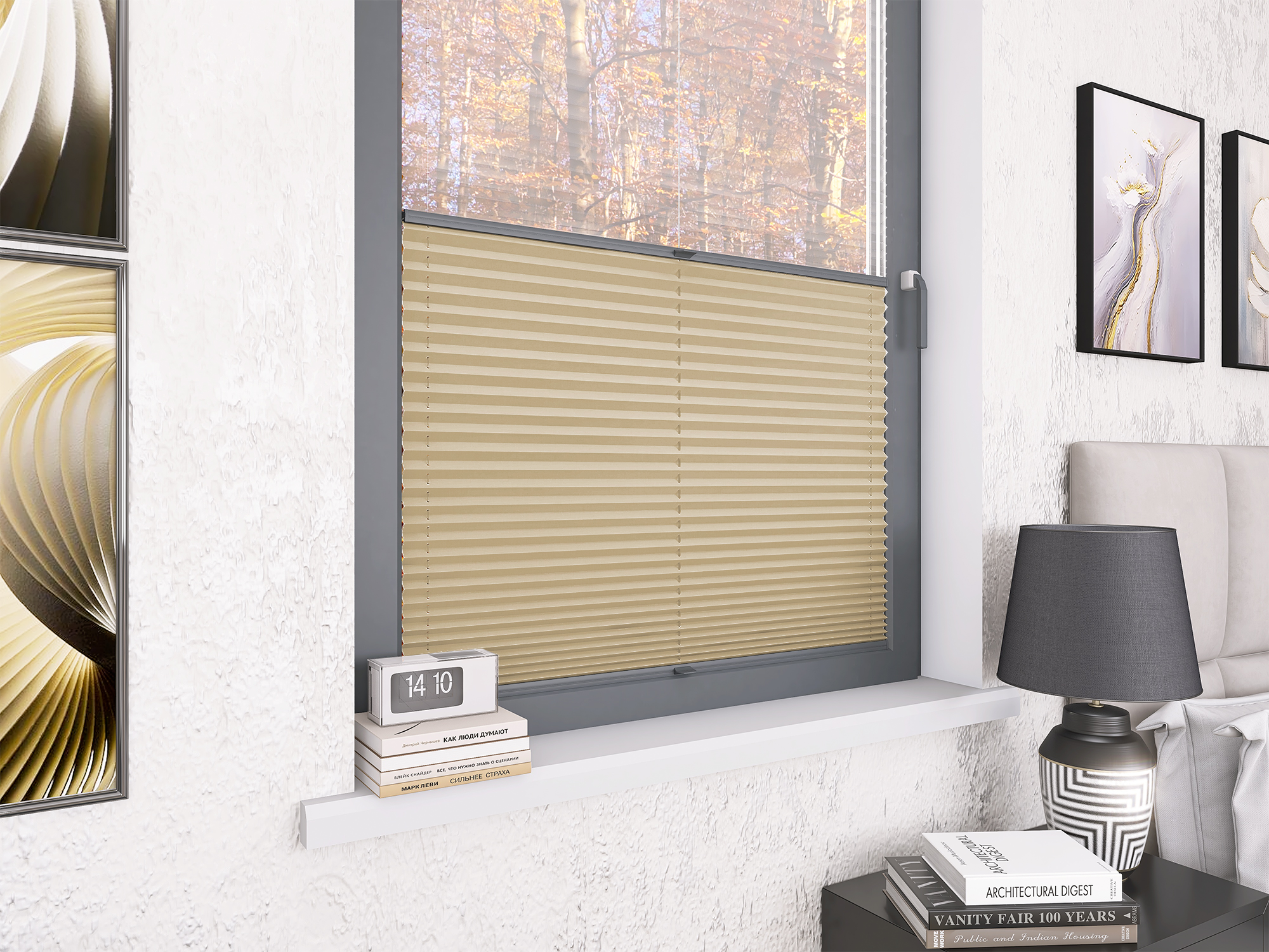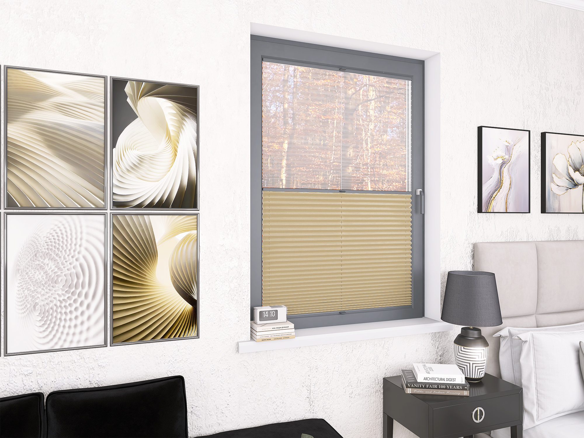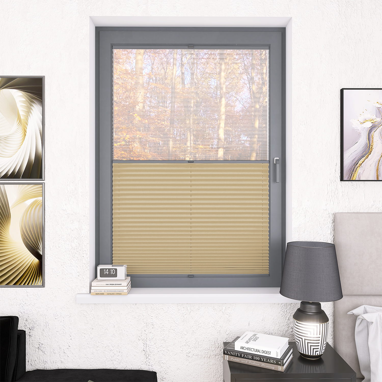 Roleta Plisowana 668 Kremowy Beż + Firana - Profil Vegas Antracyt