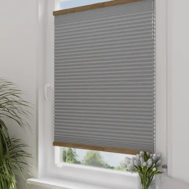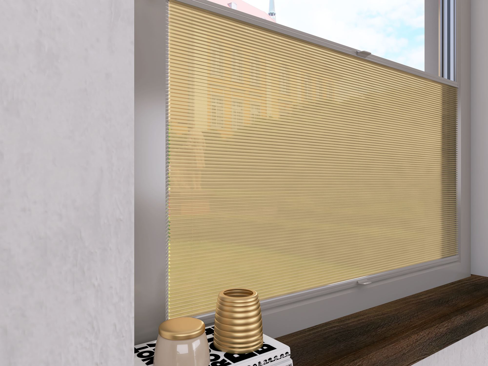 DIEGO – lekka tkanina poliestrowa (153 g/m²) o trwałych kolorach i przepuszczalności światła 28–48%. Plisowane lamelki (20 mm) nadają jej wyjątkowy wygląd, a delikatna grubość 0,4 mm sprawia, że jest subtelna i elegancka.