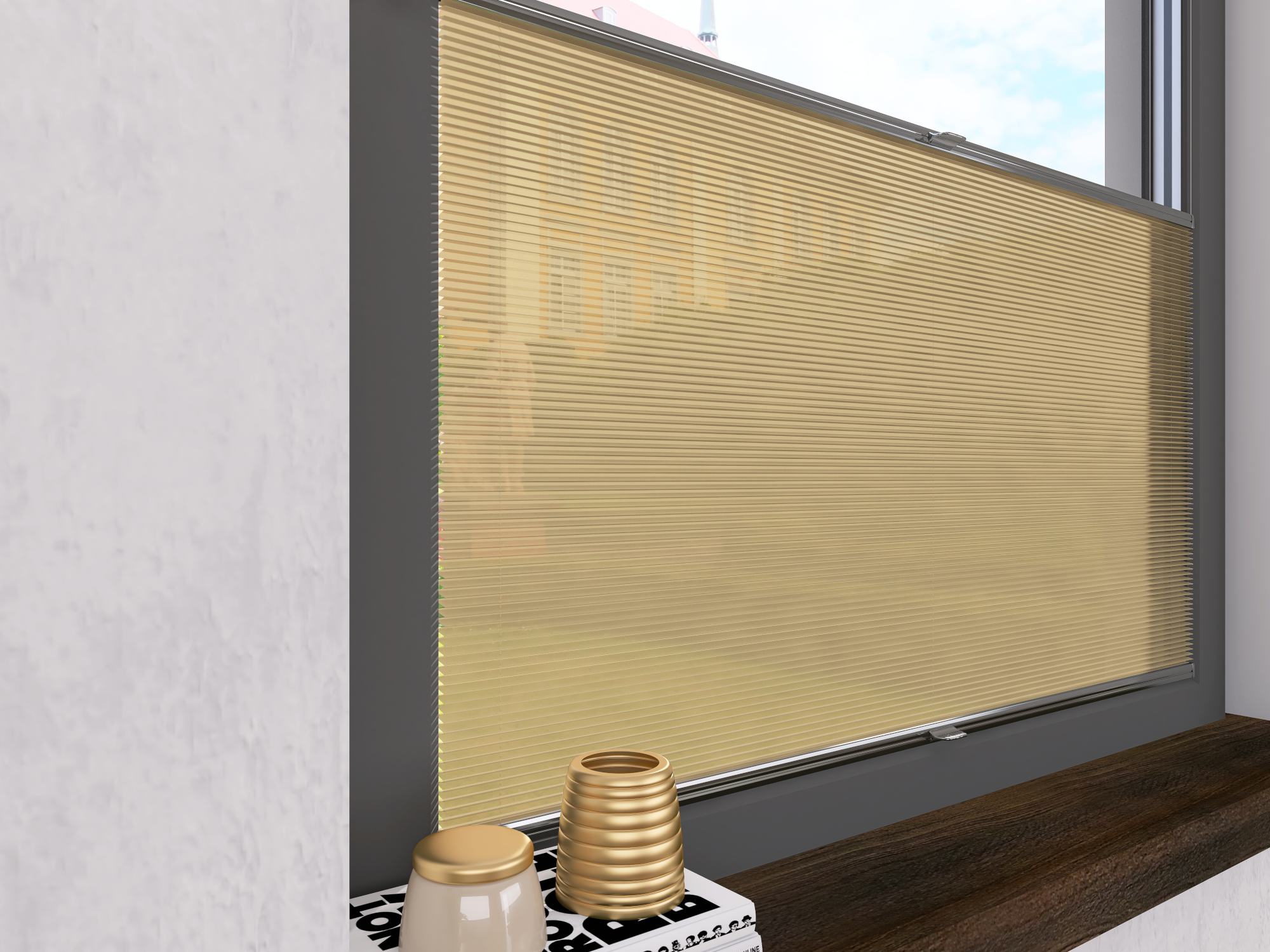 DIEGO – lekka tkanina poliestrowa (153 g/m²) o trwałych kolorach i przepuszczalności światła 28–48%. Plisowane lamelki (20 mm) nadają jej wyjątkowy wygląd, a delikatna grubość 0,4 mm sprawia, że jest subtelna i elegancka.