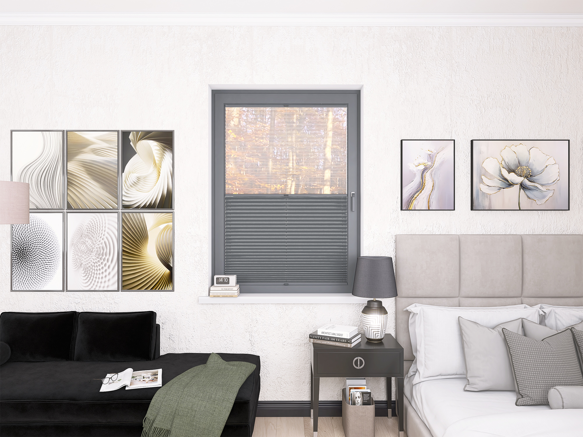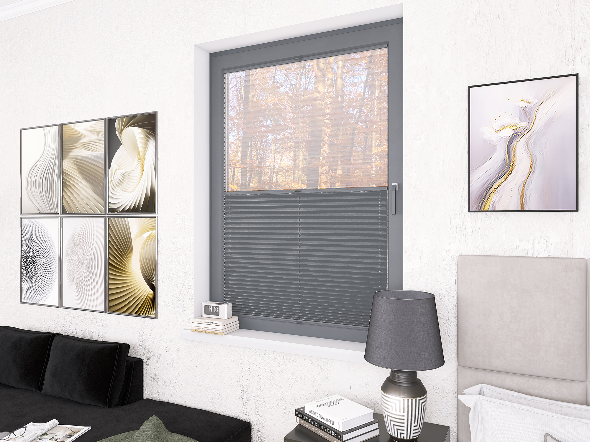 Roleta Plisowana 669 Stalowy Szary + Firana - Profil Vegas Antracyt