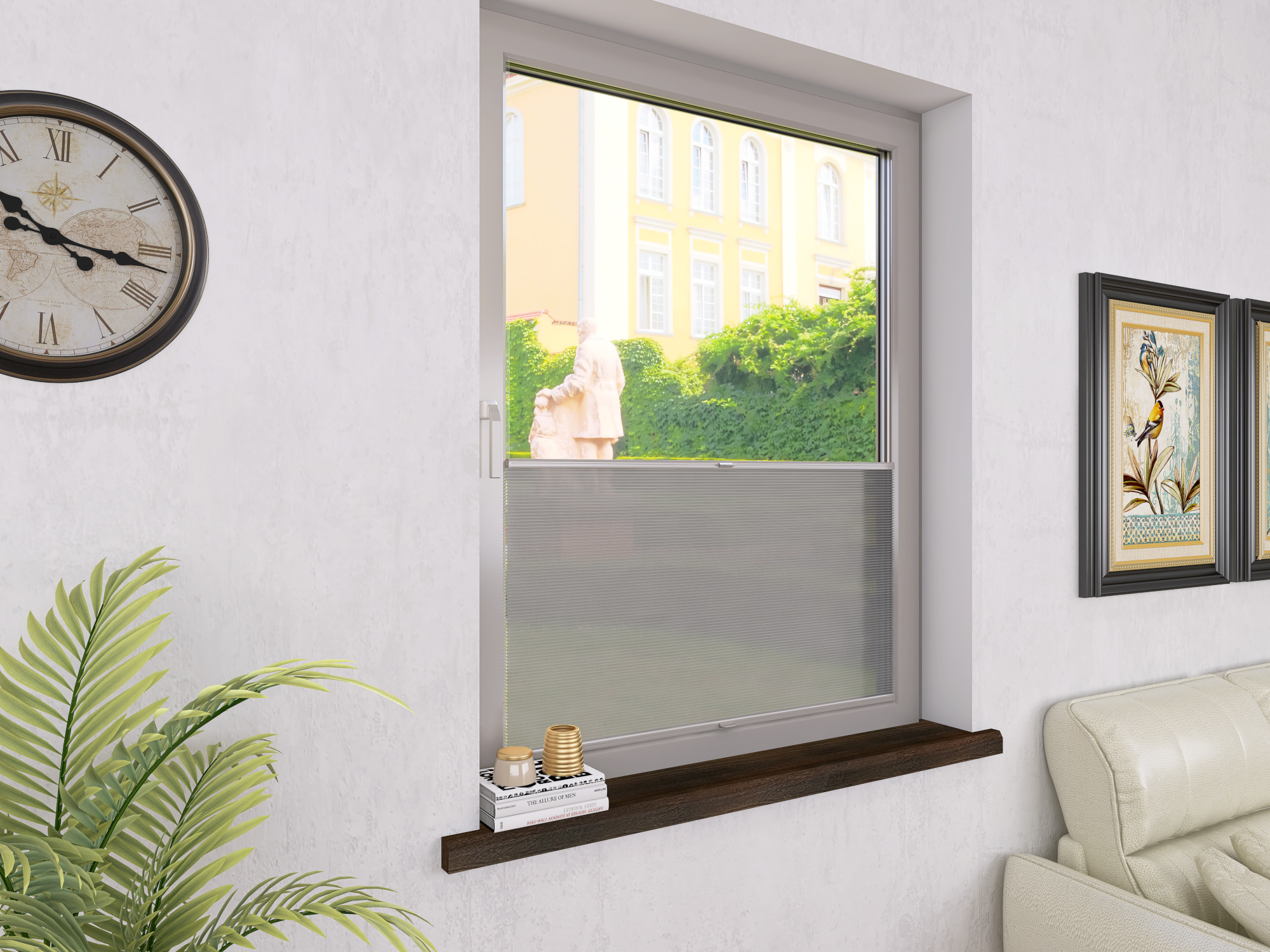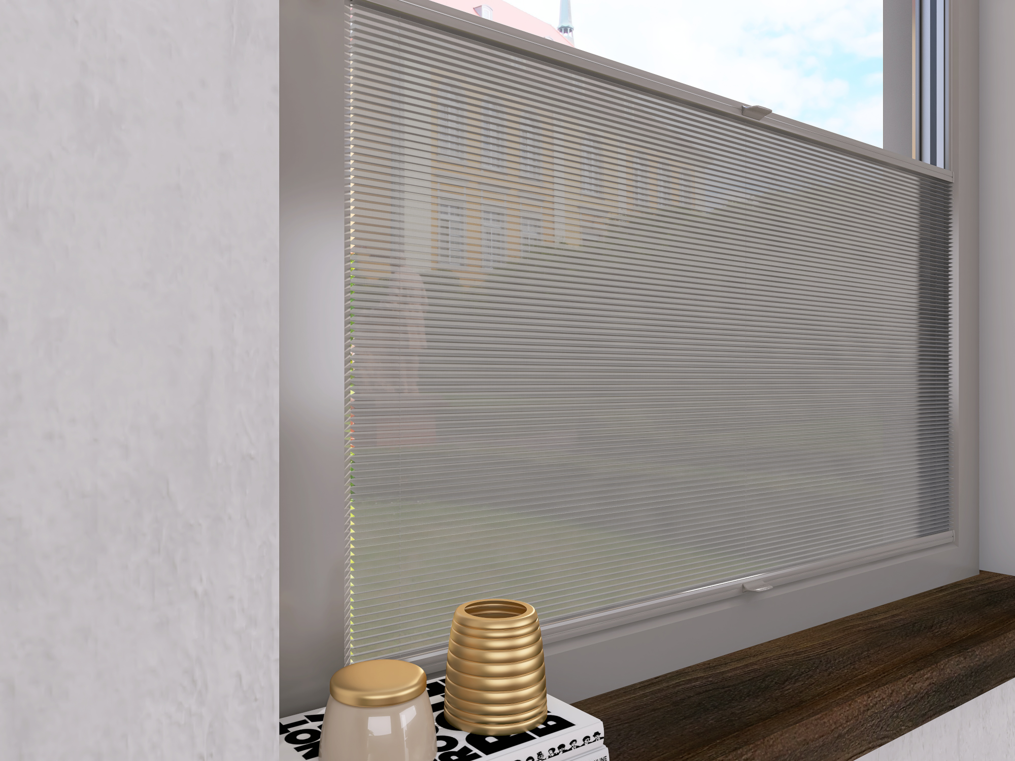 DIEGO – lekka tkanina poliestrowa (153 g/m²) o trwałych kolorach i przepuszczalności światła 28–48%. Plisowane lamelki (20 mm) nadają jej wyjątkowy wygląd, a delikatna grubość 0,4 mm sprawia, że jest subtelna i elegancka.