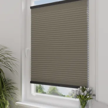 DIEGO – lekka tkanina poliestrowa (153 g/m²) o trwałych kolorach i przepuszczalności światła 28–48%. Plisowane lamelki (20 mm) nadają jej wyjątkowy wygląd, a delikatna grubość 0,4 mm sprawia, że jest subtelna i elegancka.