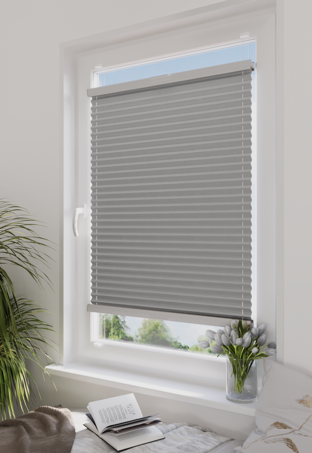 DIEGO PEARL – tkanina z powłoką odbijającą światło, gramatura 167 g/m². Transmisja światła od 0,30% do 15,62% w zależności od koloru. Eleganckie plisy (20 mm) i delikatna struktura (0,4 mm) gwarantują stylowy wygląd i wysoki komfort.