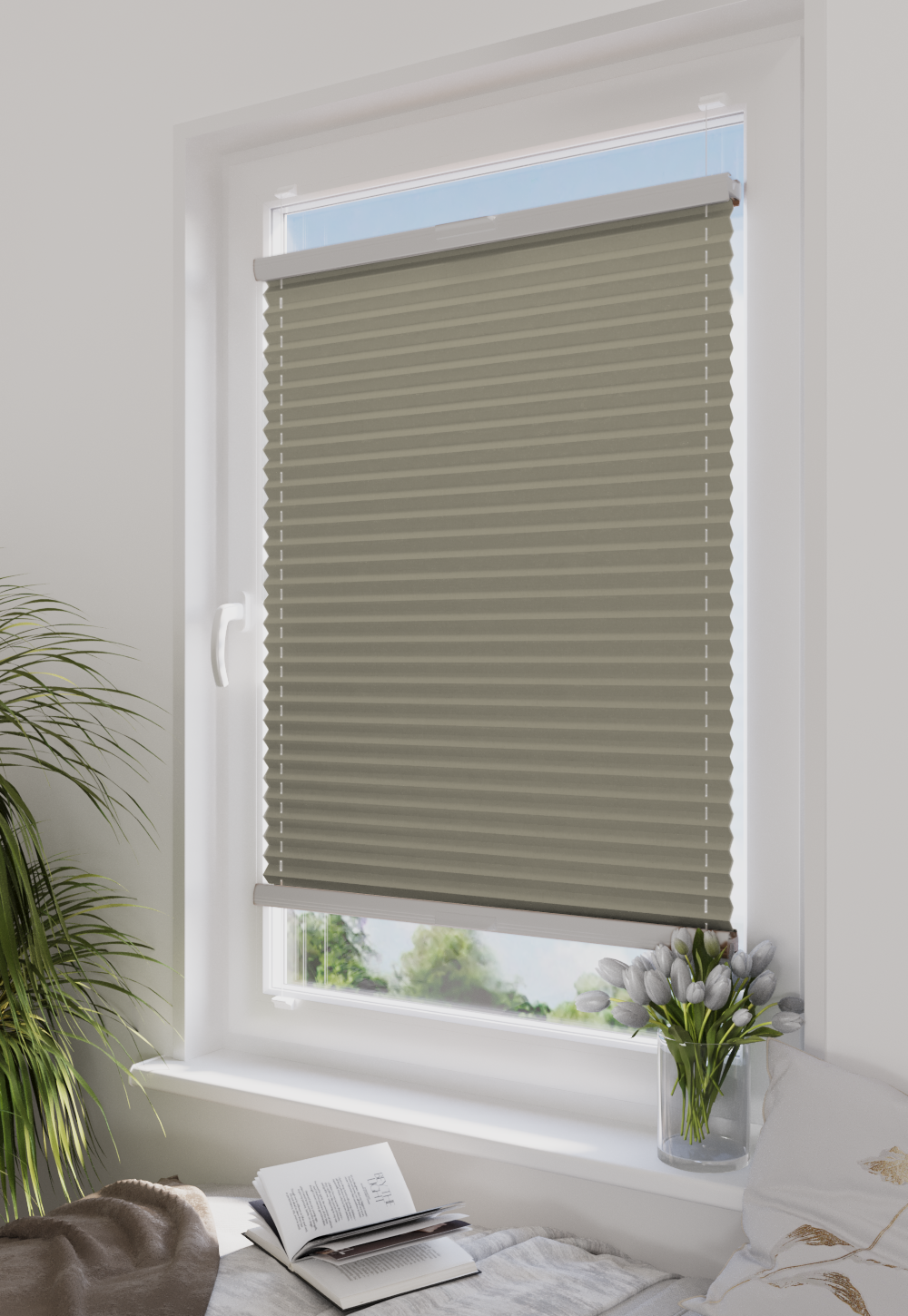 DIEGO – lekka tkanina poliestrowa (153 g/m²) o trwałych kolorach i przepuszczalności światła 28–48%. Plisowane lamelki (20 mm) nadają jej wyjątkowy wygląd, a delikatna grubość 0,4 mm sprawia, że jest subtelna i elegancka.