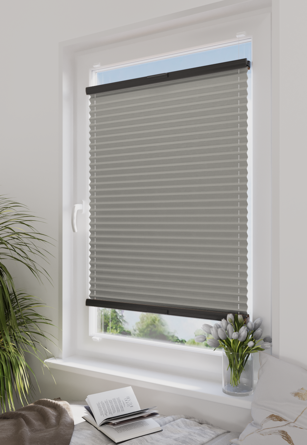 DIEGO PEARL – tkanina z powłoką odbijającą światło, gramatura 167 g/m². Transmisja światła od 0,30% do 15,62% w zależności od koloru. Eleganckie plisy (20 mm) i delikatna struktura (0,4 mm) gwarantują stylowy wygląd i wysoki komfort.