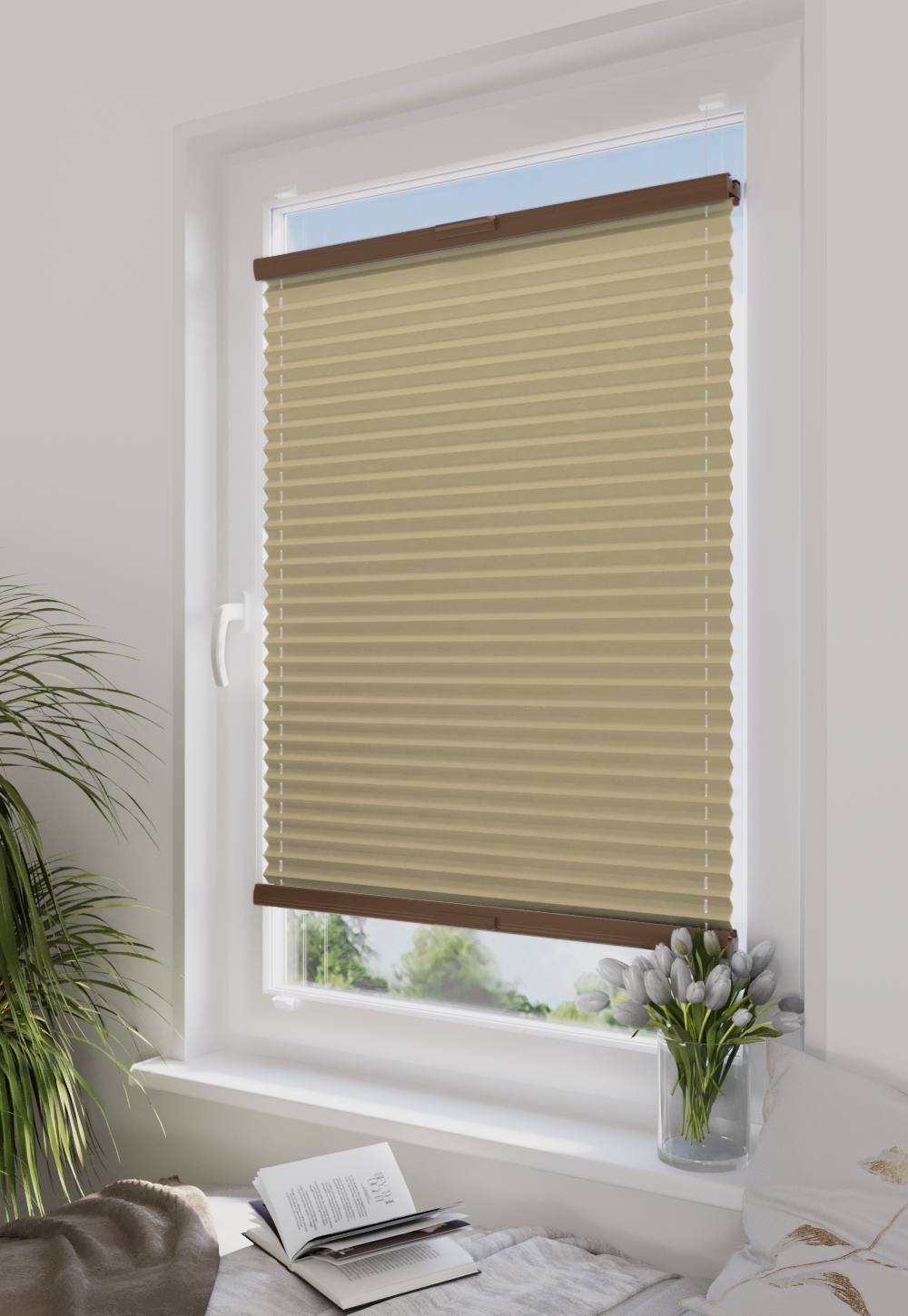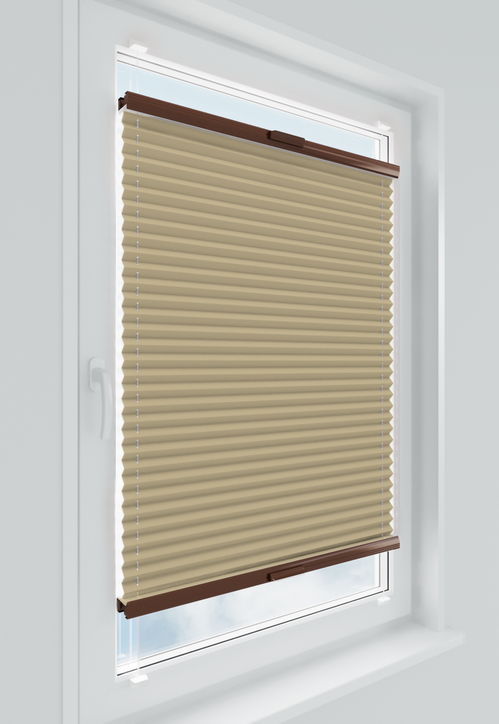 DIEGO – lekka tkanina poliestrowa (153 g/m²) o trwałych kolorach i przepuszczalności światła 28–48%. Plisowane lamelki (20 mm) nadają jej wyjątkowy wygląd, a delikatna grubość 0,4 mm sprawia, że jest subtelna i elegancka.