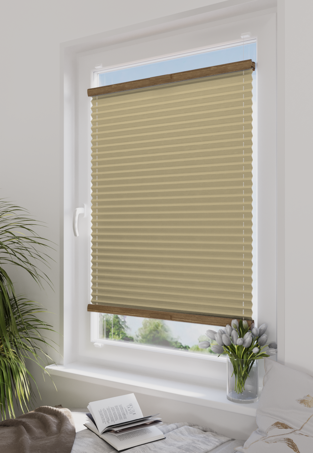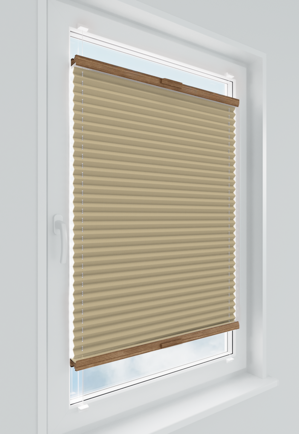DIEGO – lekka tkanina poliestrowa (153 g/m²) o trwałych kolorach i przepuszczalności światła 28–48%. Plisowane lamelki (20 mm) nadają jej wyjątkowy wygląd, a delikatna grubość 0,4 mm sprawia, że jest subtelna i elegancka.
