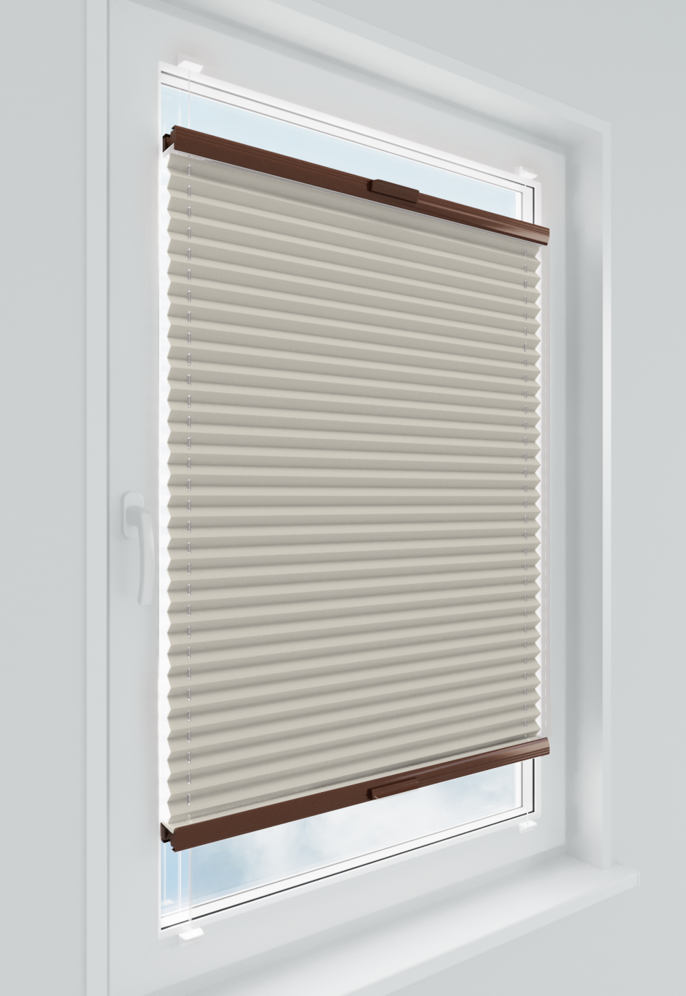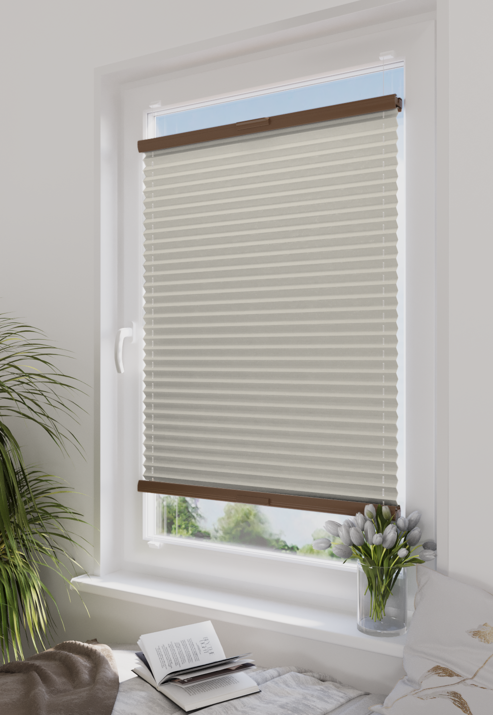 DIEGO – lekka tkanina poliestrowa (153 g/m²) o trwałych kolorach i przepuszczalności światła 28–48%. Plisowane lamelki (20 mm) nadają jej wyjątkowy wygląd, a delikatna grubość 0,4 mm sprawia, że jest subtelna i elegancka.