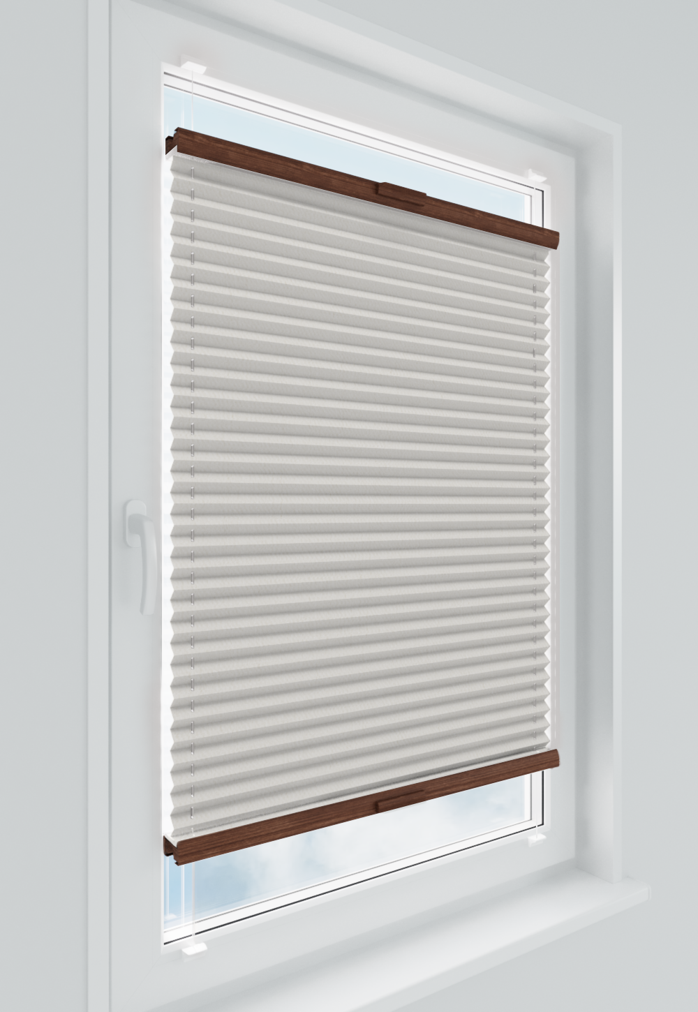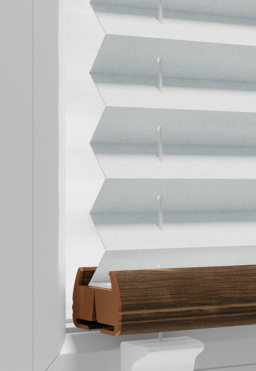 DIEGO – lekka tkanina poliestrowa (153 g/m²) o trwałych kolorach i przepuszczalności światła 28–48%. Plisowane lamelki (20 mm) nadają jej wyjątkowy wygląd, a delikatna grubość 0,4 mm sprawia, że jest subtelna i elegancka.