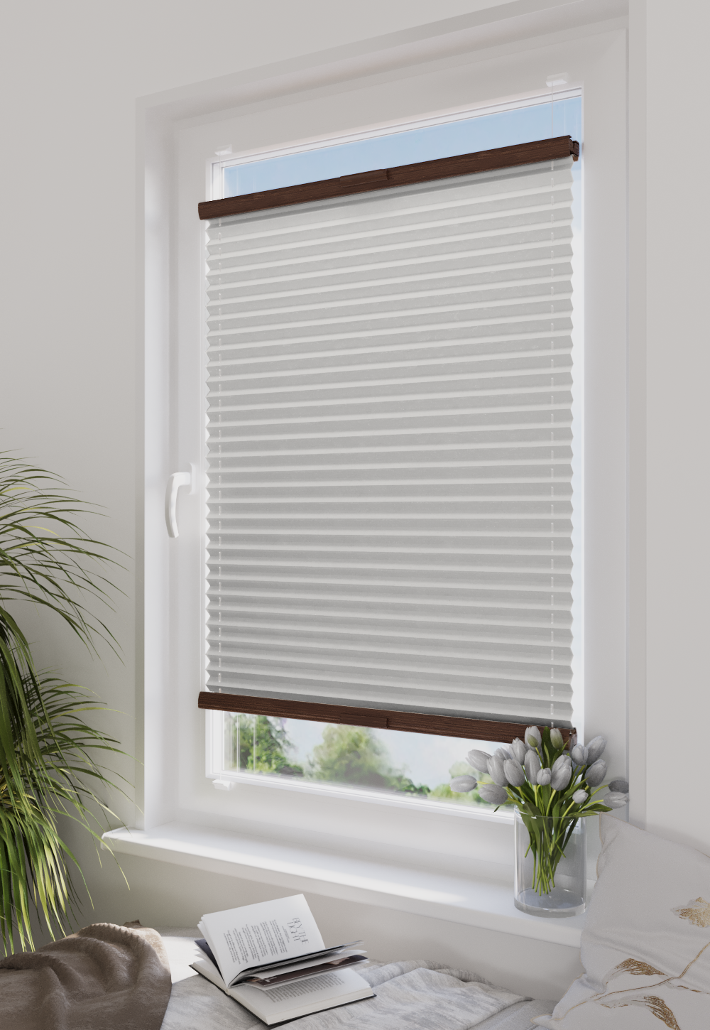 System rolet plisowanych MAGNUS łączy wytrzymałość i elastyczność dopasowania do dużych okien dzięki profilowi 19×22 mm. Samohamujący mechanizm umożliwia precyzyjną regulację wysokości. Metalowe wkładki i magnesy neodymowe gwarantują szybki montaż i trwałość.