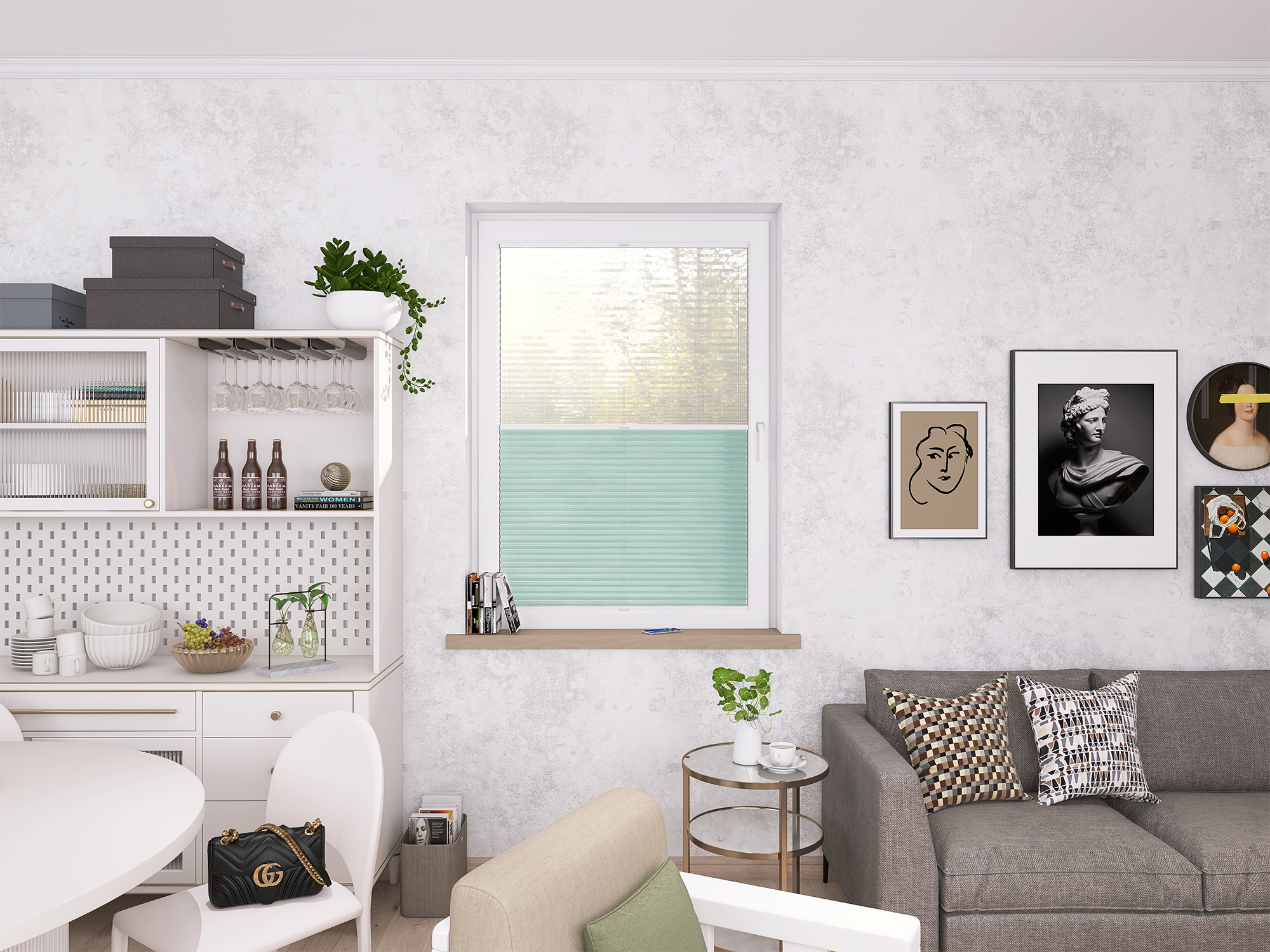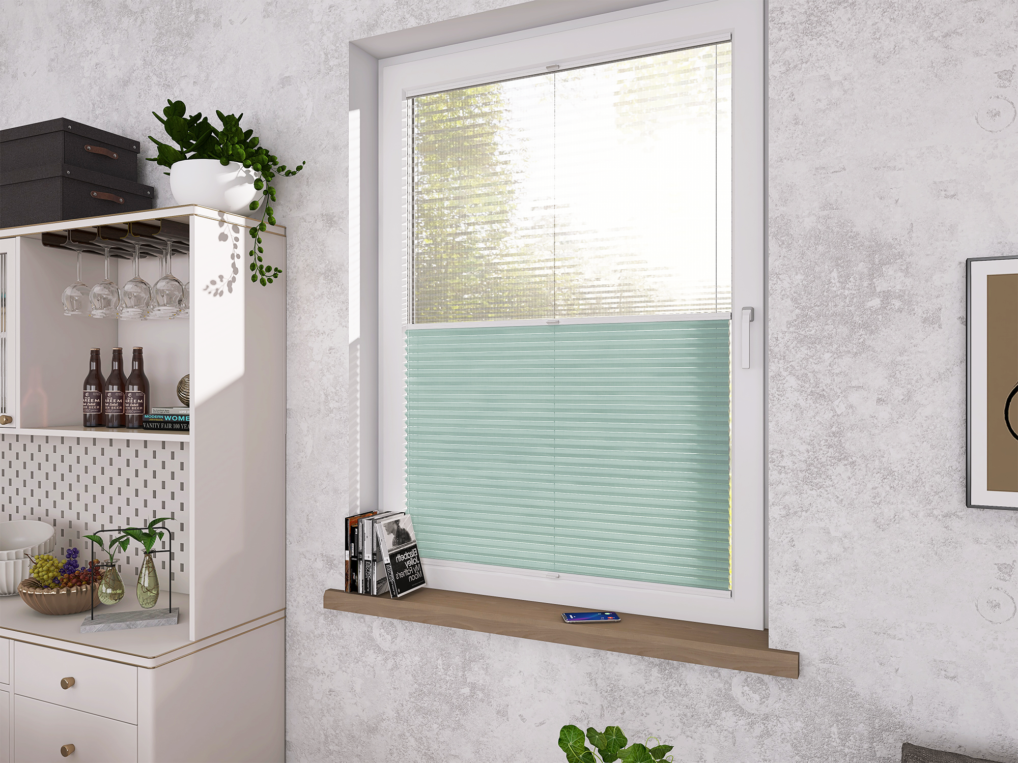 Plisy Honeycomb o lekkiej transparentności – dwuwarstwowa tkanina w formie plastra miodu. Ukryte sznurki i gładka powierzchnia bez otworów zapewniają elegancki wygląd oraz delikatne, rozproszone światło w pomieszczeniu. Idealne do nowoczesnych i przytulnych wnętrz.