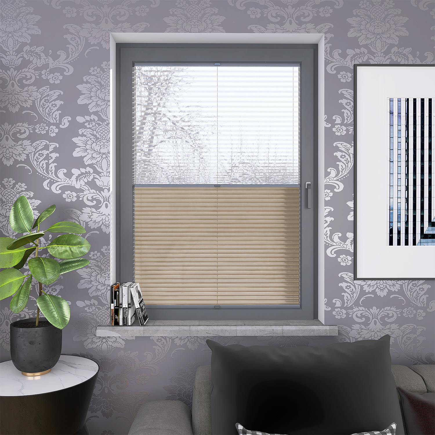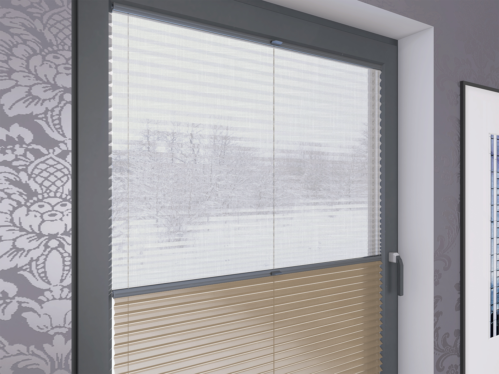 Roleta Plisowana Plaster Miodu AD 5 Beżowy + Firana - Profil Vegas Antracyt