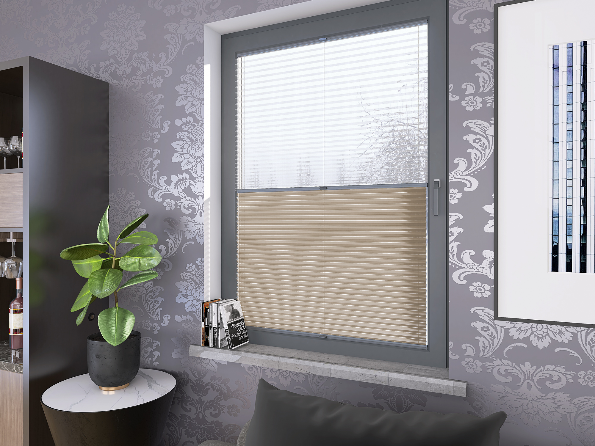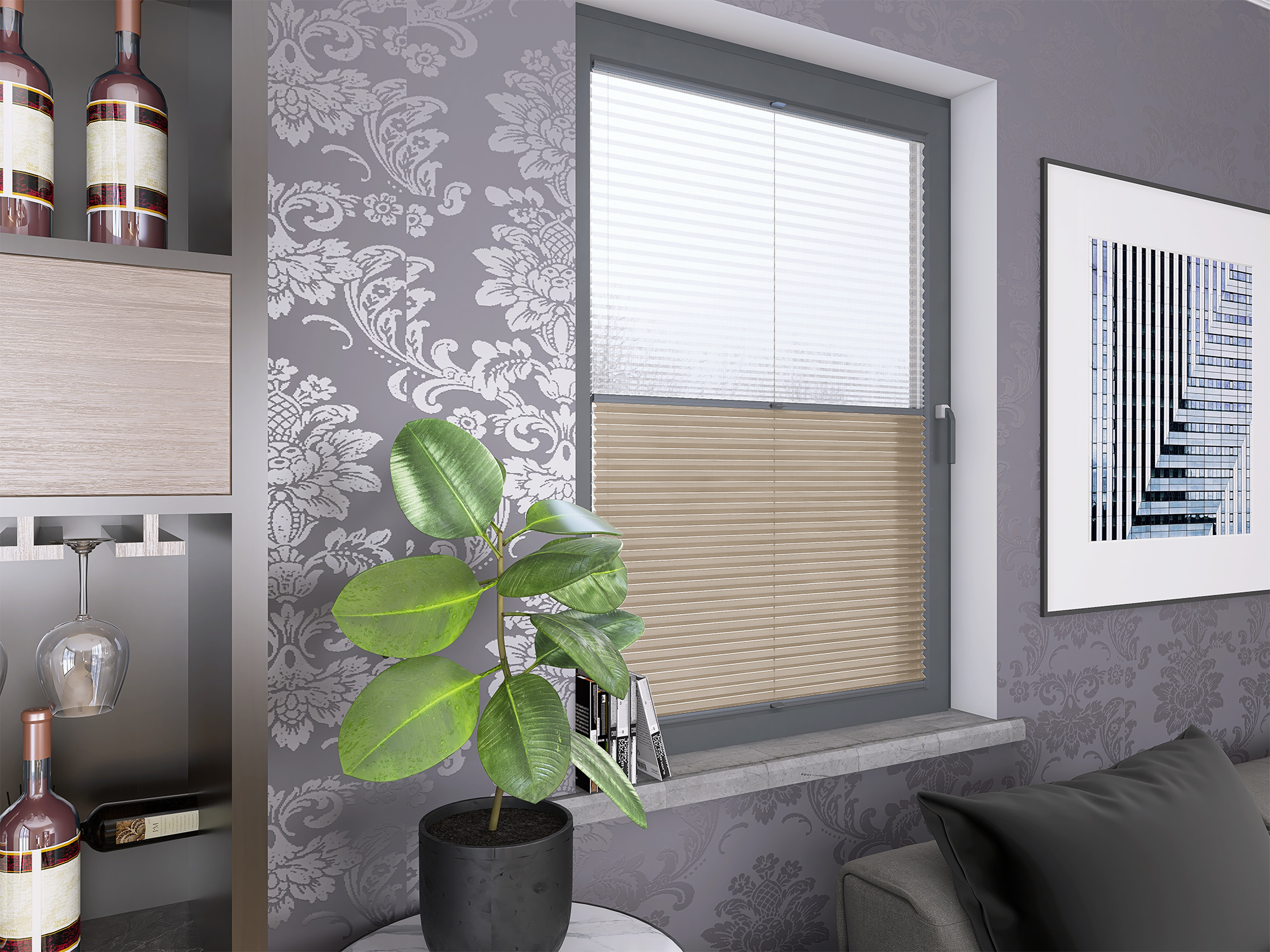 Plisy Honeycomb o lekkiej transparentności – dwuwarstwowa tkanina w formie plastra miodu. Ukryte sznurki i gładka powierzchnia bez otworów zapewniają elegancki wygląd oraz delikatne, rozproszone światło w pomieszczeniu. Idealne do nowoczesnych i przytulnych wnętrz.