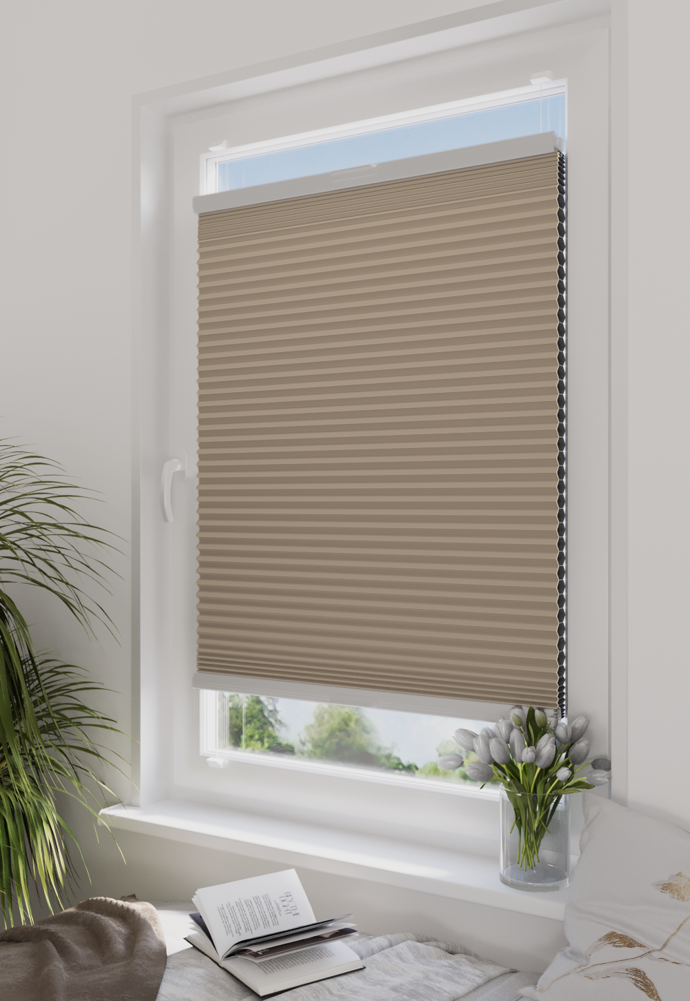 Roleta plisowana plaster miodu beżowa AD5 - profil biały