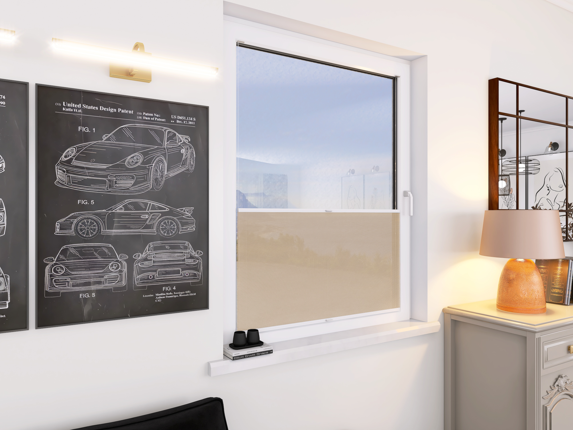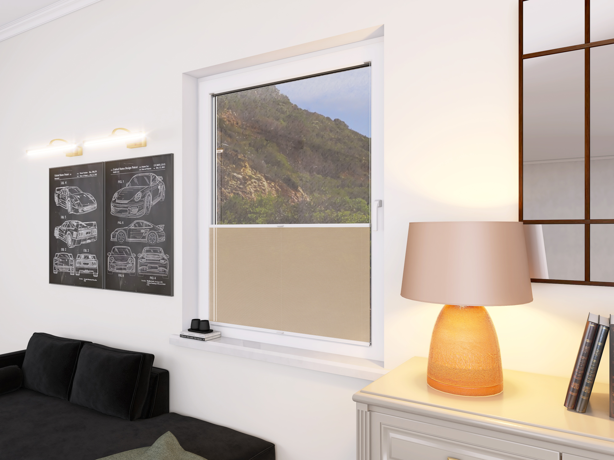 Plisy Honeycomb o lekkiej transparentności – dwuwarstwowa tkanina w formie plastra miodu. Ukryte sznurki i gładka powierzchnia bez otworów zapewniają elegancki wygląd oraz delikatne, rozproszone światło w pomieszczeniu. Idealne do nowoczesnych i przytulnych wnętrz.