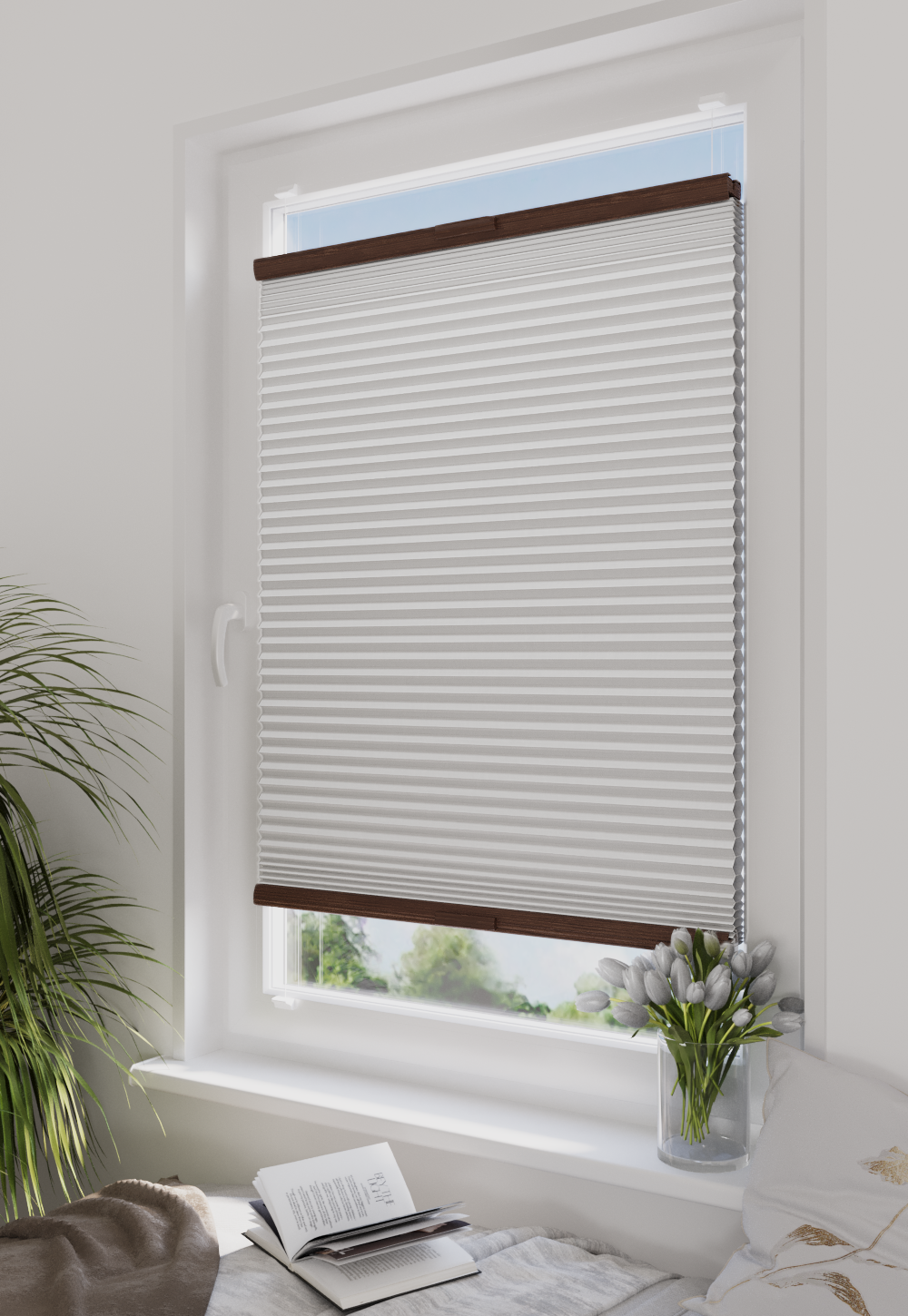 Plisy Honeycomb o lekkiej transparentności – dwuwarstwowa tkanina w formie plastra miodu. Ukryte sznurki i gładka powierzchnia bez otworów zapewniają elegancki wygląd oraz delikatne, rozproszone światło w pomieszczeniu. Idealne do nowoczesnych i przytulnych wnętrz.