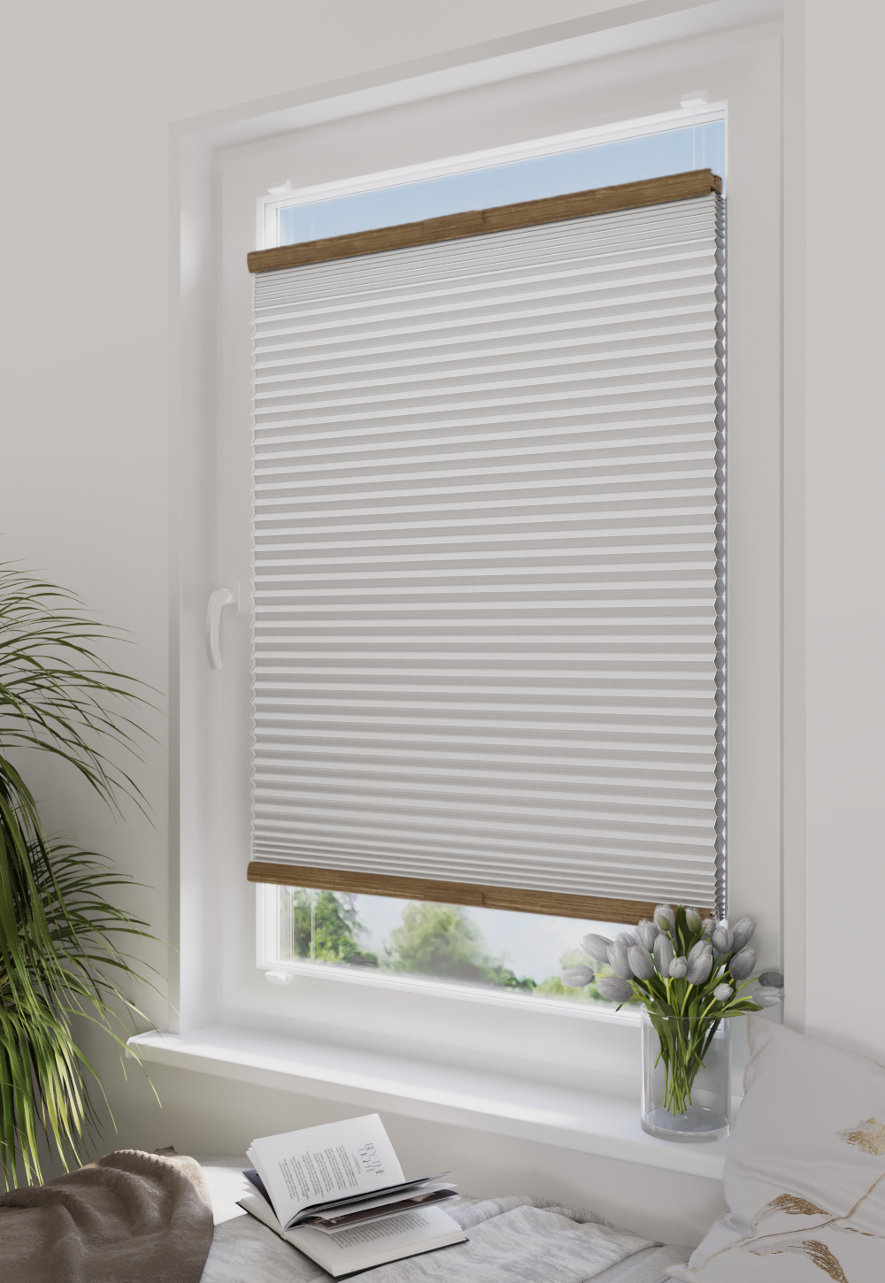 System rolet plisowanych MAGNUS łączy wytrzymałość i elastyczność dopasowania do dużych okien dzięki profilowi 19×22 mm. Samohamujący mechanizm umożliwia precyzyjną regulację wysokości. Metalowe wkładki i magnesy neodymowe gwarantują szybki montaż i trwałość.