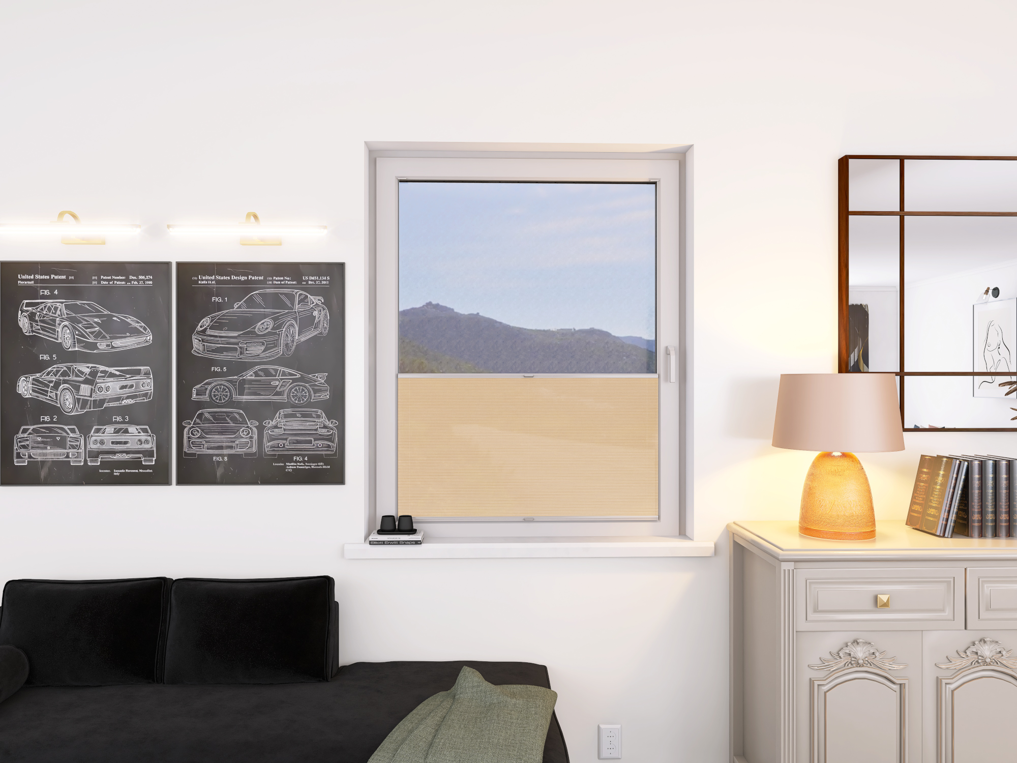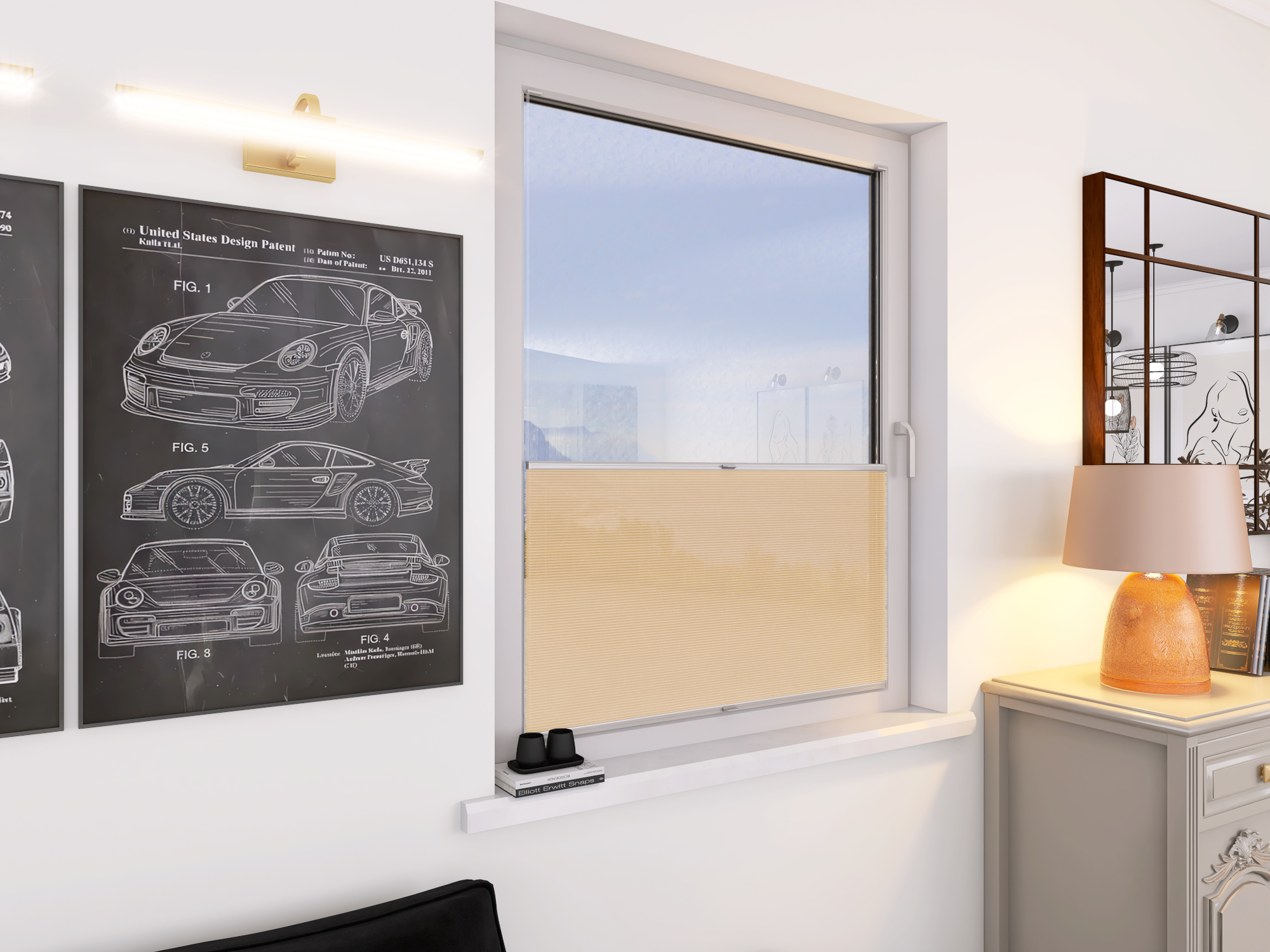 Plisy Honeycomb o lekkiej transparentności – dwuwarstwowa tkanina w formie plastra miodu. Ukryte sznurki i gładka powierzchnia bez otworów zapewniają elegancki wygląd oraz delikatne, rozproszone światło w pomieszczeniu. Idealne do nowoczesnych i przytulnych wnętrz.