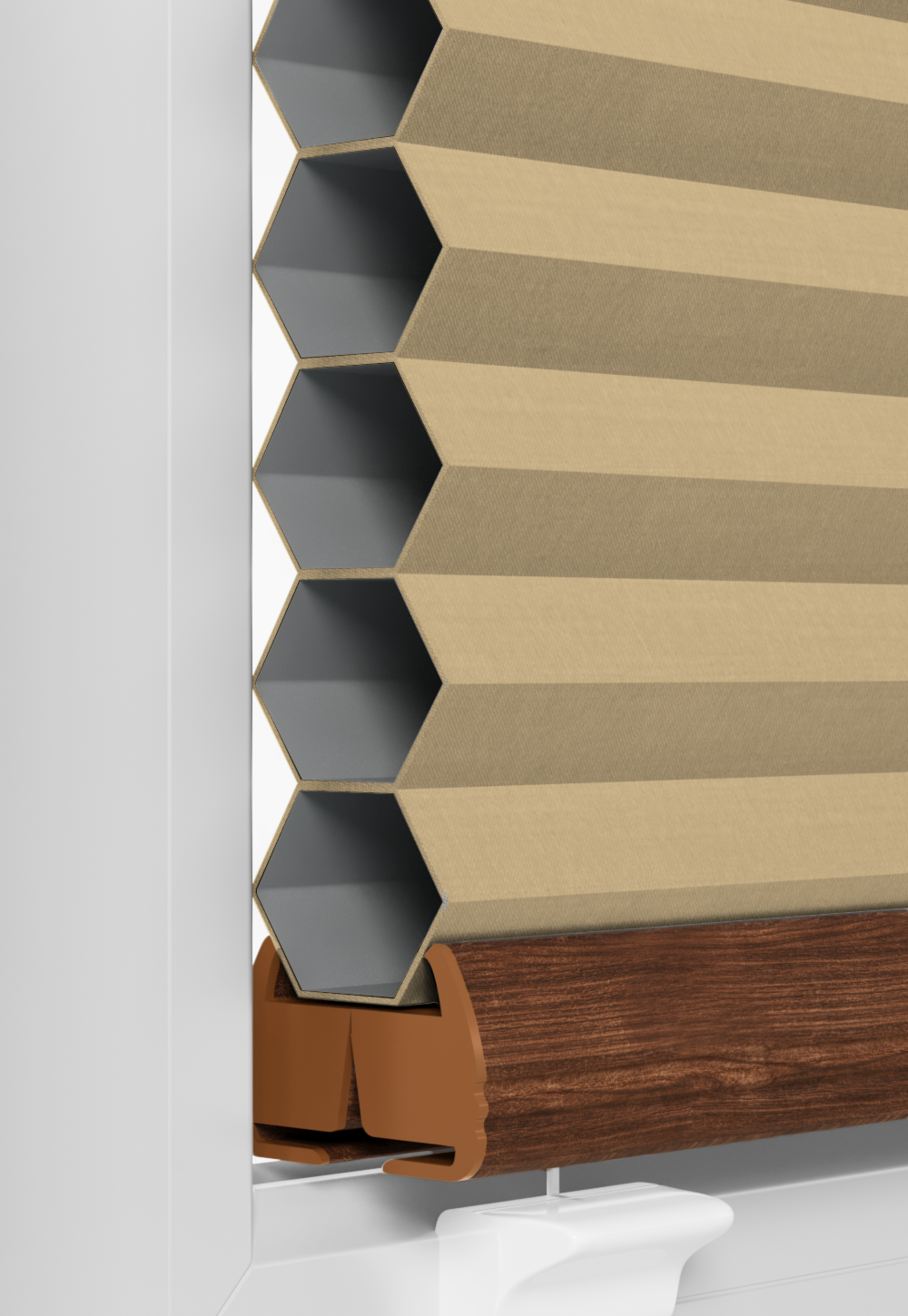 Plisy Honeycomb o lekkiej transparentności – dwuwarstwowa tkanina w formie plastra miodu. Ukryte sznurki i gładka powierzchnia bez otworów zapewniają elegancki wygląd oraz delikatne, rozproszone światło w pomieszczeniu. Idealne do nowoczesnych i przytulnych wnętrz.