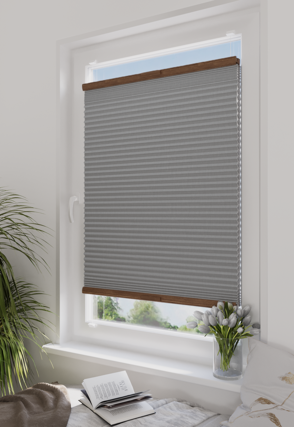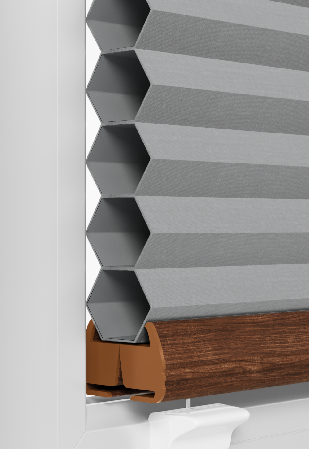 Plisy Honeycomb o lekkiej transparentności – dwuwarstwowa tkanina w formie plastra miodu. Ukryte sznurki i gładka powierzchnia bez otworów zapewniają elegancki wygląd oraz delikatne, rozproszone światło w pomieszczeniu. Idealne do nowoczesnych i przytulnych wnętrz.