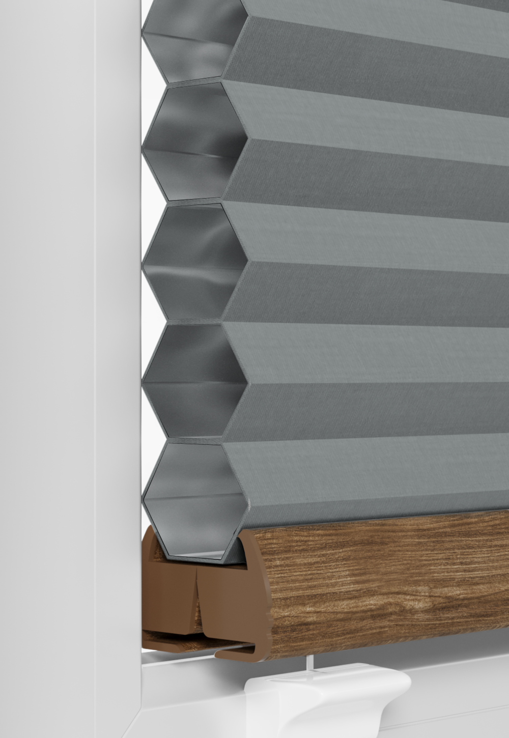 Plisy Plaster Miodu Honeycomb z powłoką termo i pełnym zaciemnieniem (100%) znacząco różnią się od tradycyjnych plis. To zupełnie inny typ tkaniny – zbudowanej z dwóch równoległych warstw, które po złożeniu tworzą charakterystyczny kształt przypominający plaster miodu. Co istotne, w tej konstrukcji sznurki sterujące przechodzą pomiędzy warstwami, dzięki czemu pozostają całkowicie niewidoczne. Efekt to jednolity arkusz tkaniny, pozbawiony typowych dla klasycznych plis otworów, co zapewnia elegancki wygląd i pełną funkcjonalność.