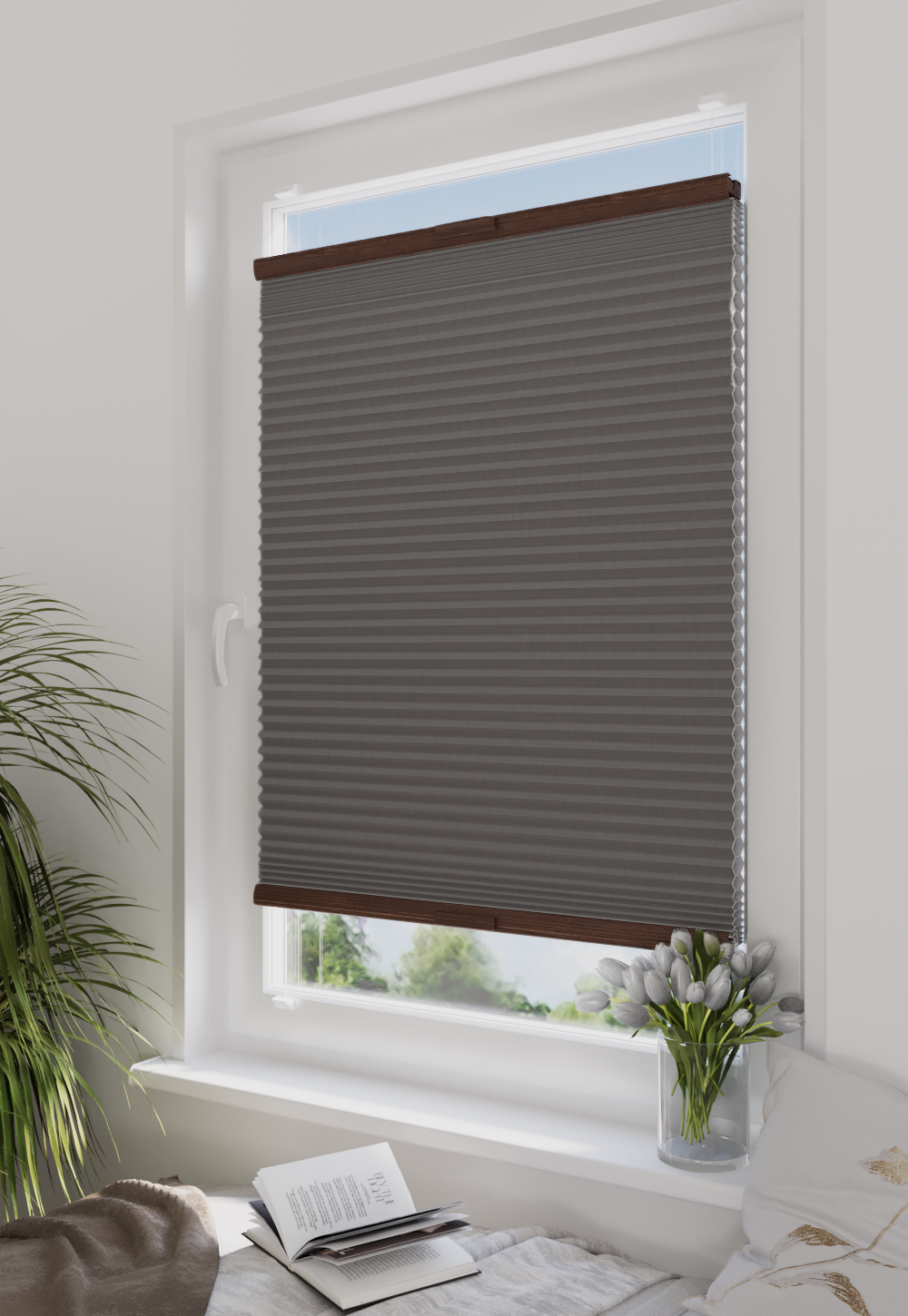 System rolet plisowanych MAGNUS łączy wytrzymałość i elastyczność dopasowania do dużych okien dzięki profilowi 19×22 mm. Samohamujący mechanizm umożliwia precyzyjną regulację wysokości. Metalowe wkładki i magnesy neodymowe gwarantują szybki montaż i trwałość.