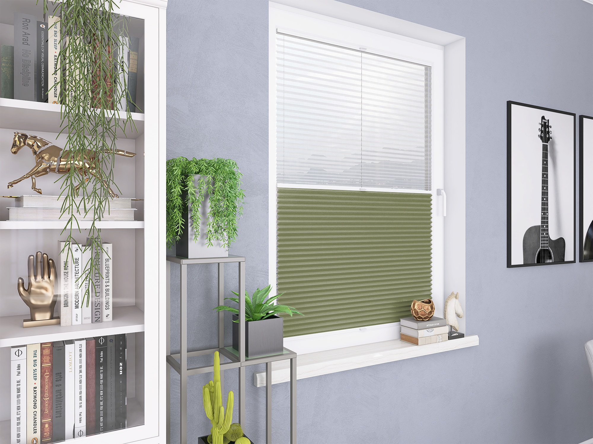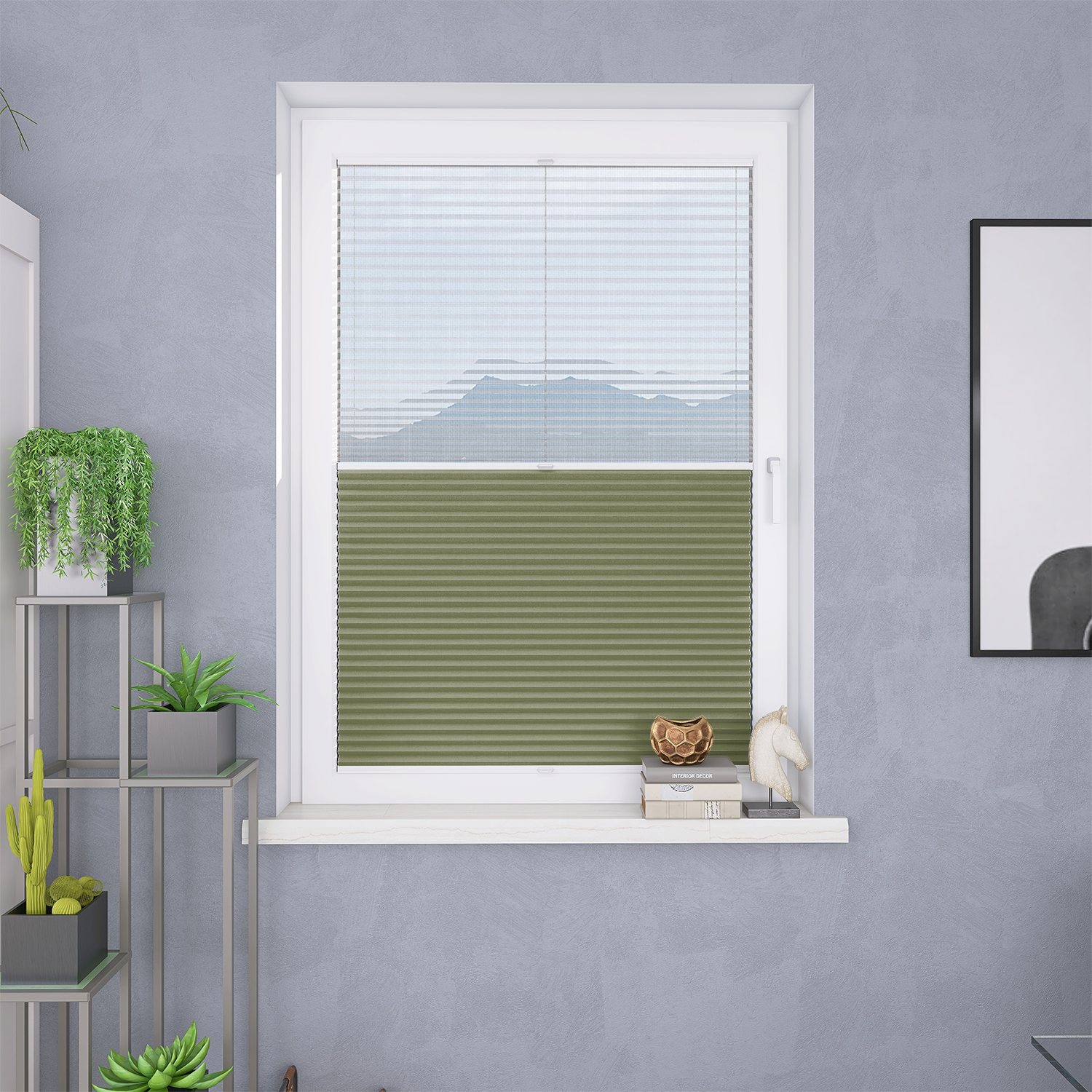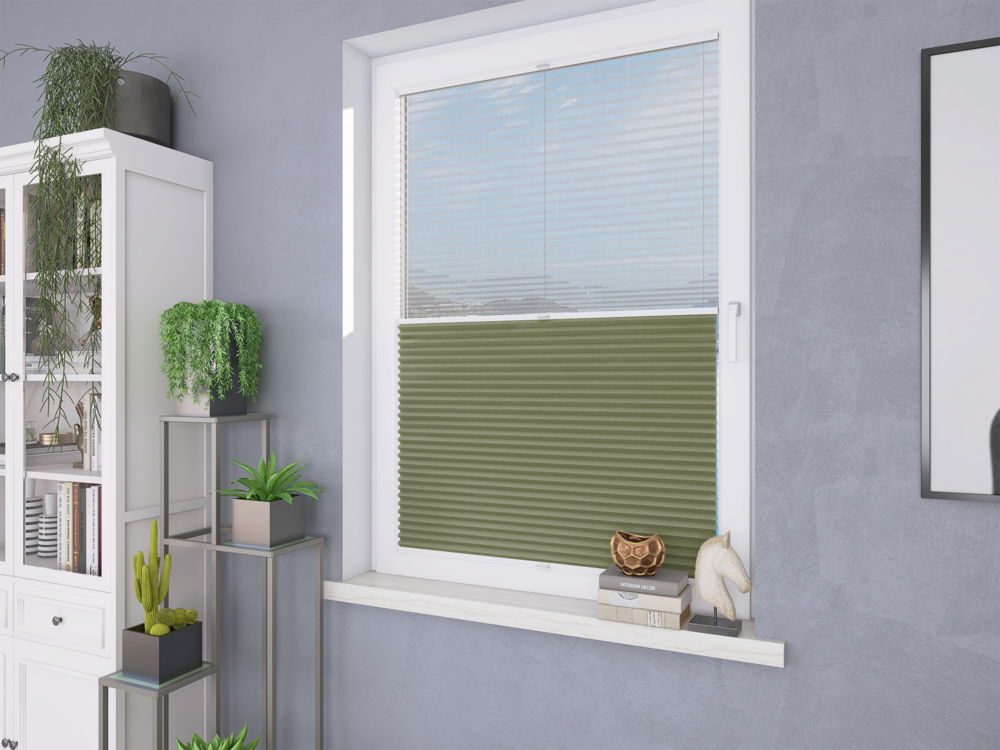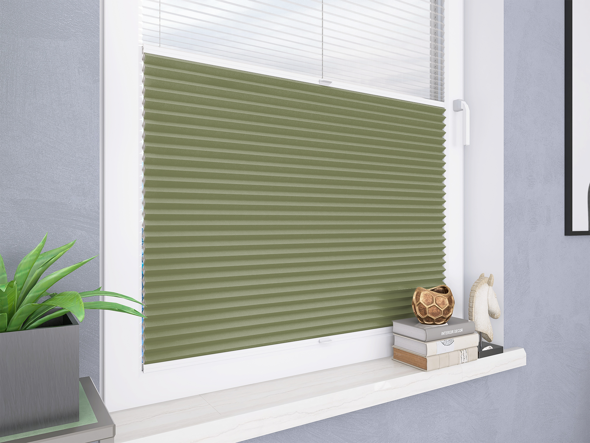 Roleta Plisowana Plaster Miodu Termo WB 203 Oliwkowa Zieleń + Firana - Profil Vegas Biały