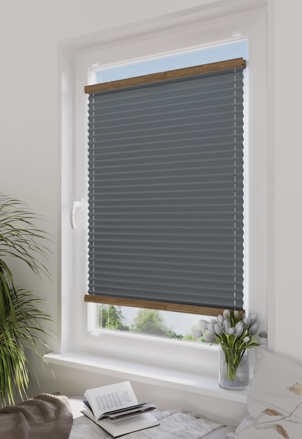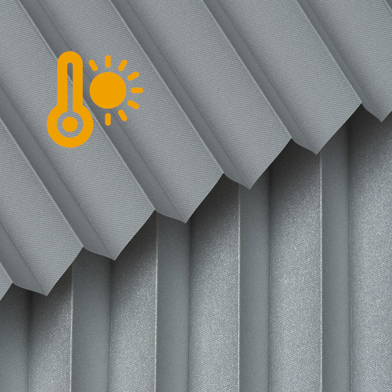 DIEGO PEARL – tkanina z powłoką odbijającą światło, gramatura 167 g/m². Transmisja światła od 0,30% do 15,62% w zależności od koloru. Eleganckie plisy (20 mm) i delikatna struktura (0,4 mm) gwarantują stylowy wygląd i wysoki komfort.
