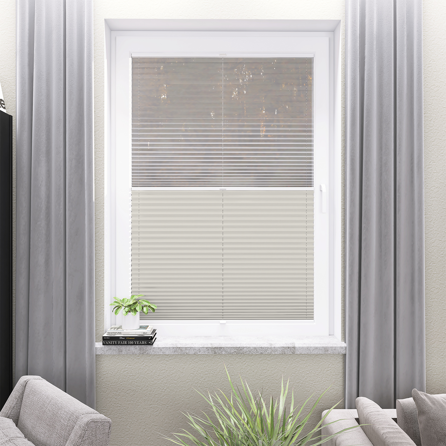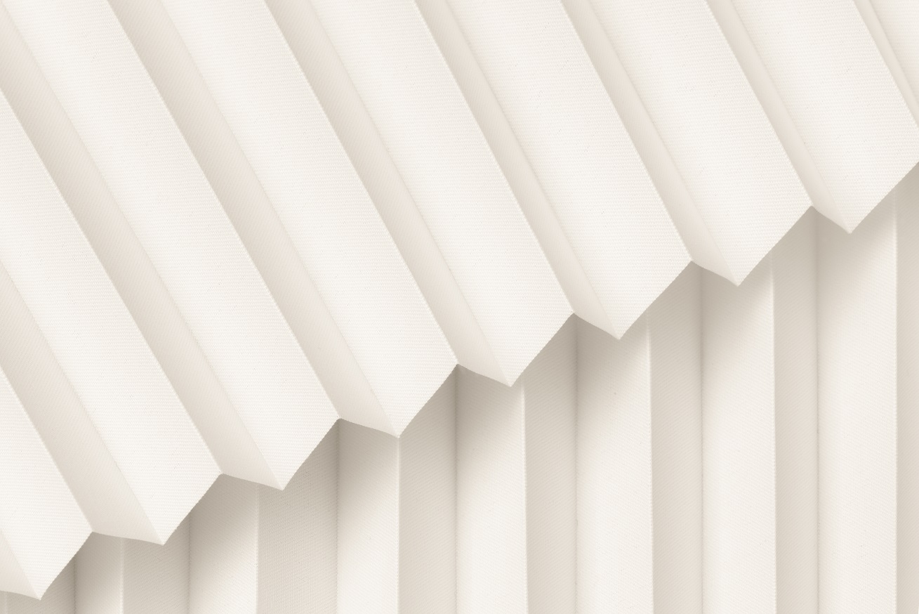 DIEGO – lekka tkanina poliestrowa (153 g/m²) o trwałych kolorach i przepuszczalności światła 28–48%. Plisowane lamelki (20 mm) nadają jej wyjątkowy wygląd, a delikatna grubość 0,4 mm sprawia, że jest subtelna i elegancka.