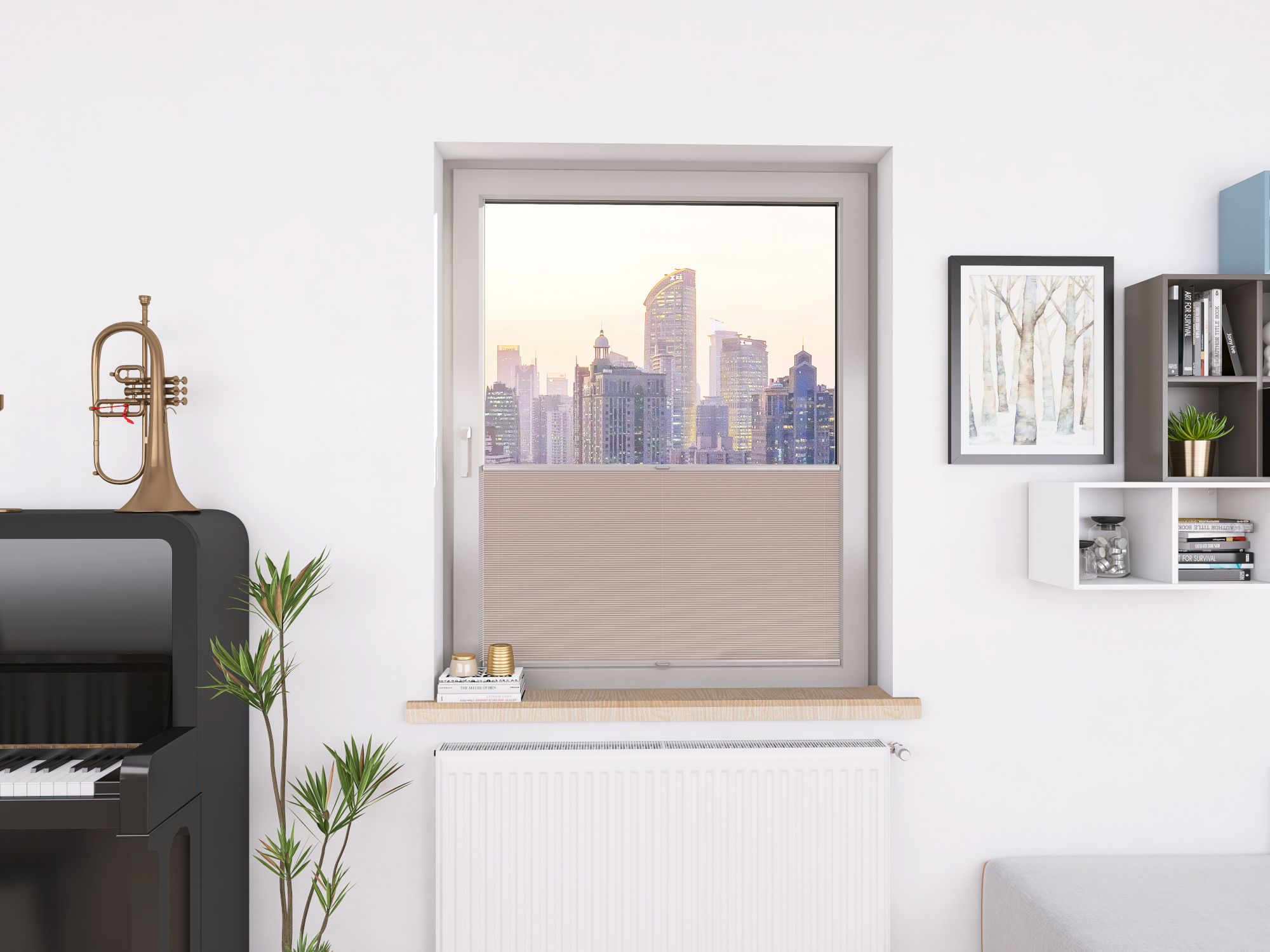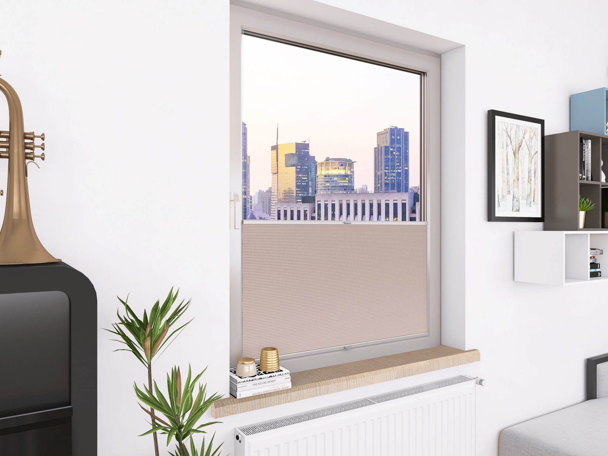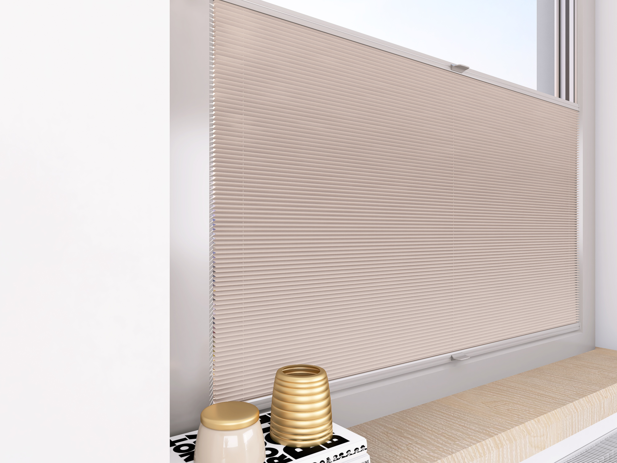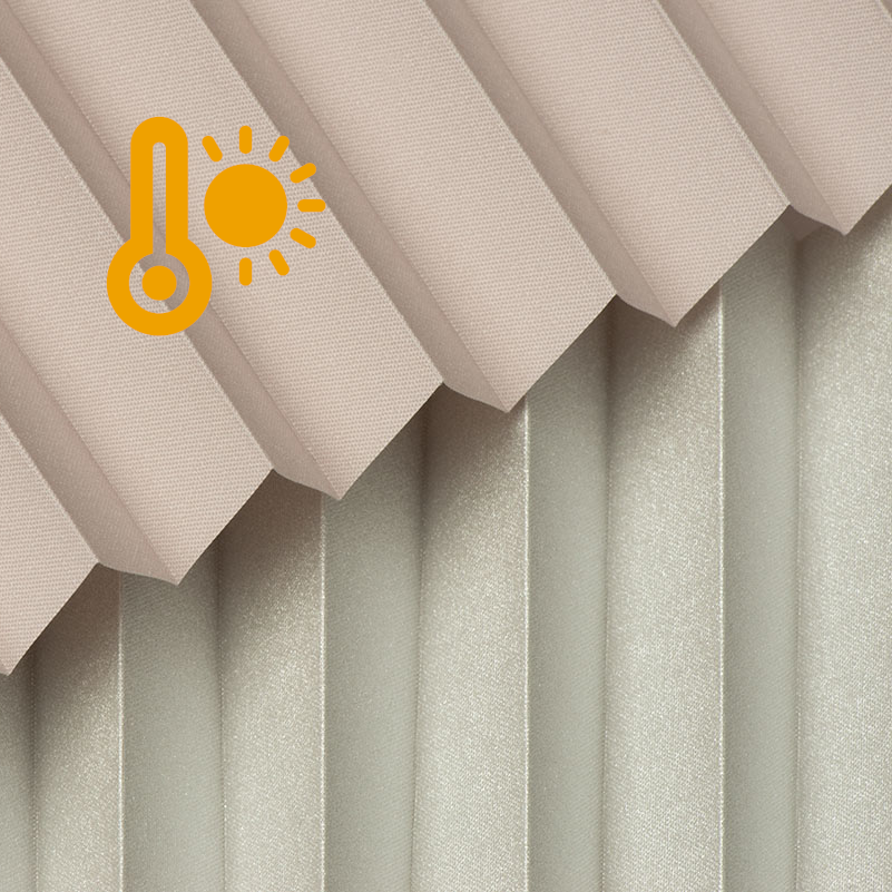 DIEGO PEARL – tkanina z powłoką odbijającą światło, gramatura 167 g/m². Transmisja światła od 0,30% do 15,62% w zależności od koloru. Eleganckie plisy (20 mm) i delikatna struktura (0,4 mm) gwarantują stylowy wygląd i wysoki komfort.
