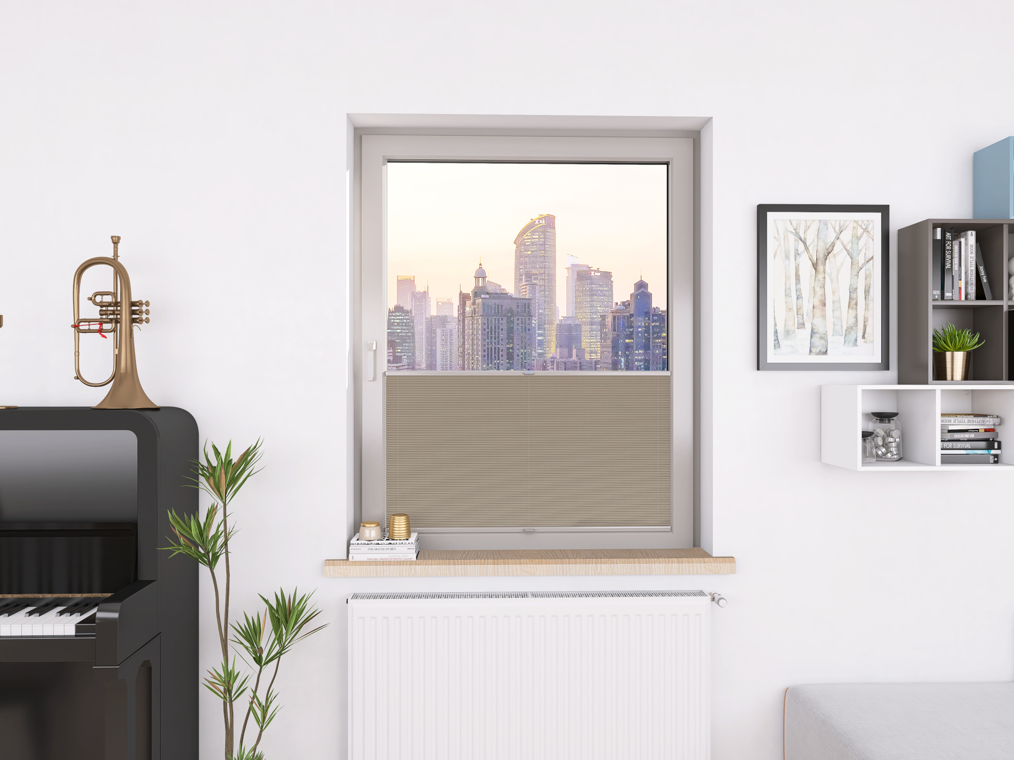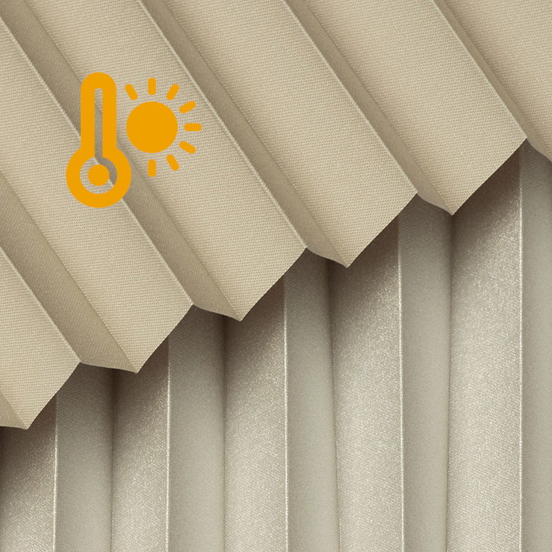 DIEGO PEARL – tkanina z powłoką odbijającą światło, gramatura 167 g/m². Transmisja światła od 0,30% do 15,62% w zależności od koloru. Eleganckie plisy (20 mm) i delikatna struktura (0,4 mm) gwarantują stylowy wygląd i wysoki komfort.