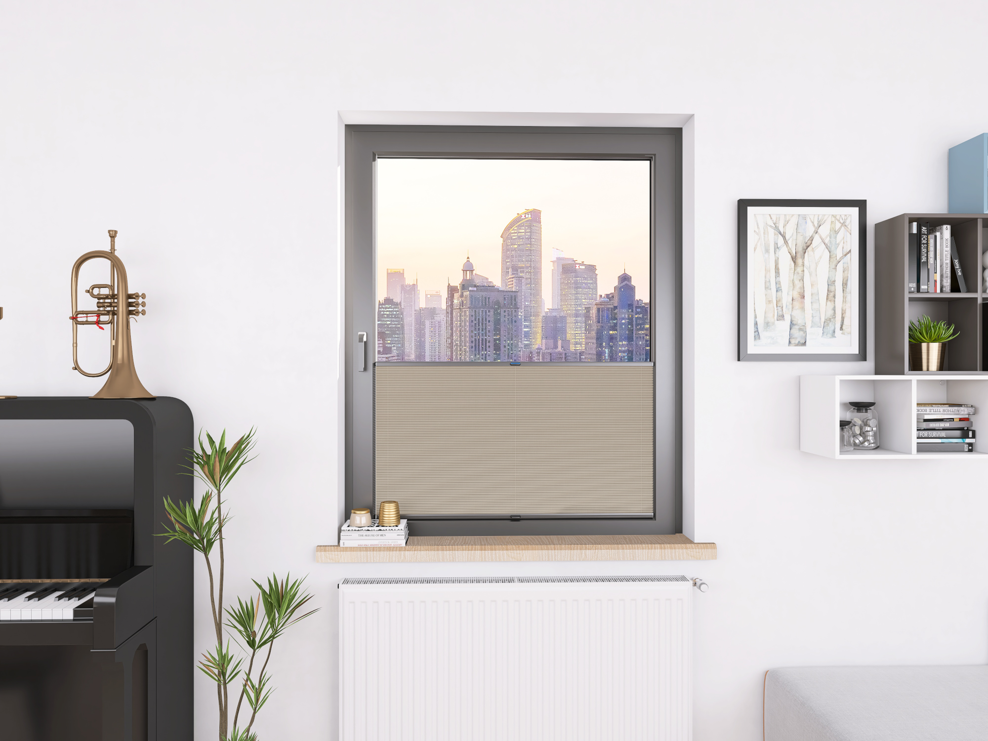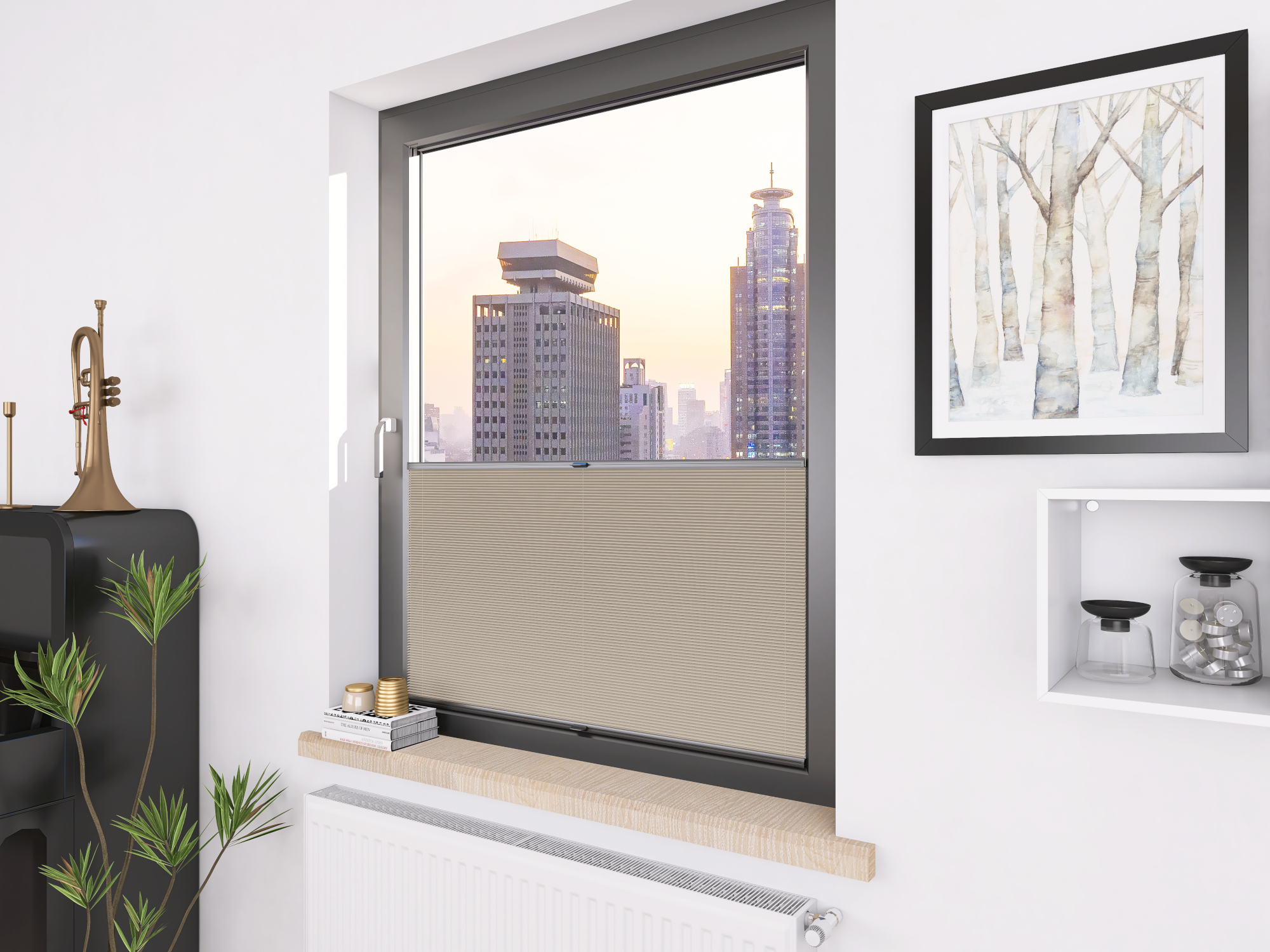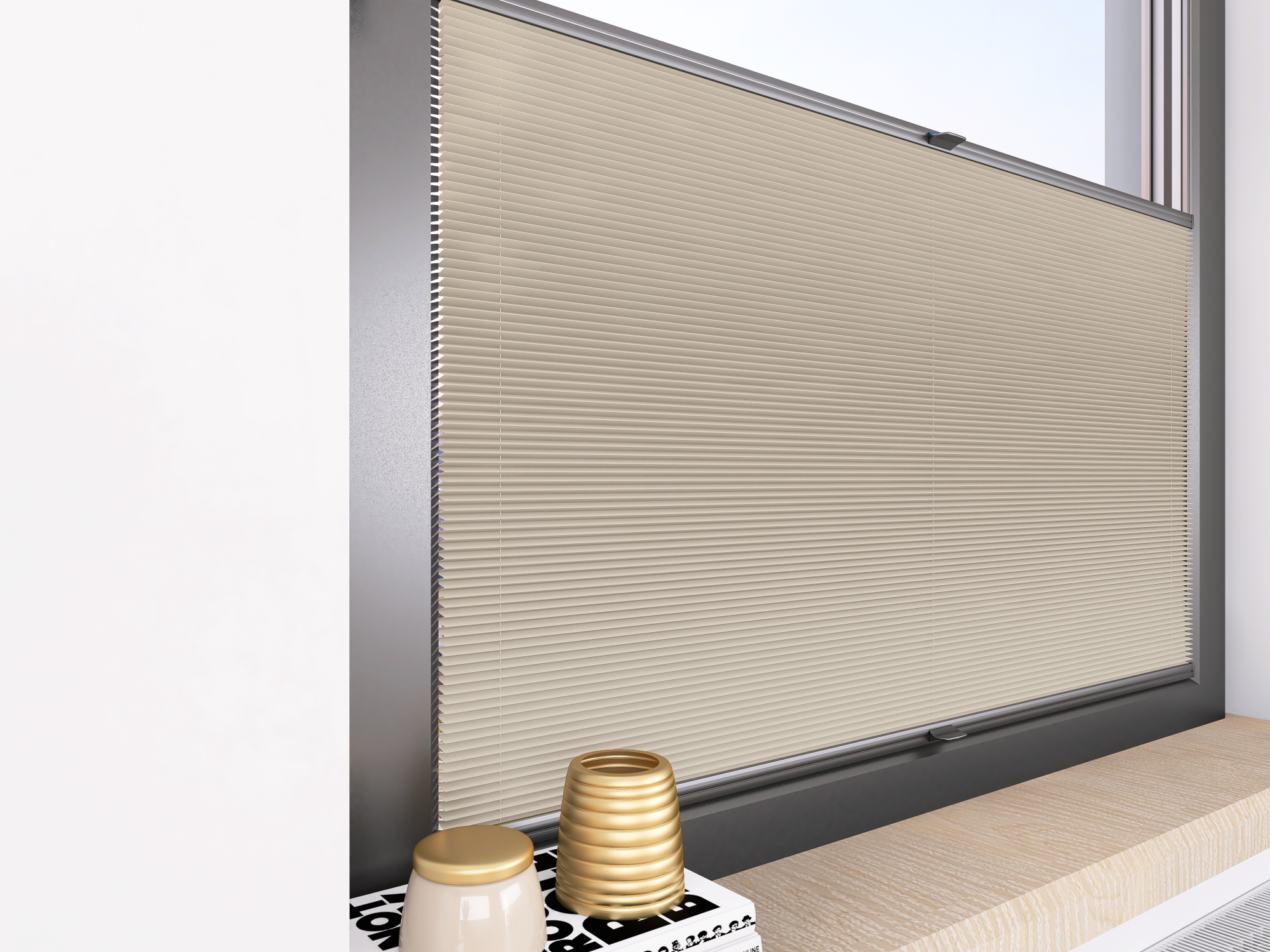 Roleta Plisowana T555 Piaskowy Beż - Profil Vegas Antracyt