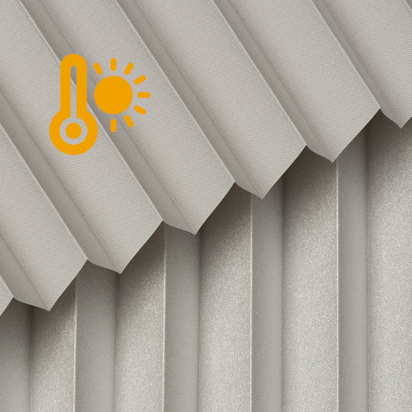 DIEGO PEARL – tkanina z powłoką odbijającą światło, gramatura 167 g/m². Transmisja światła od 0,30% do 15,62% w zależności od koloru. Eleganckie plisy (20 mm) i delikatna struktura (0,4 mm) gwarantują stylowy wygląd i wysoki komfort.