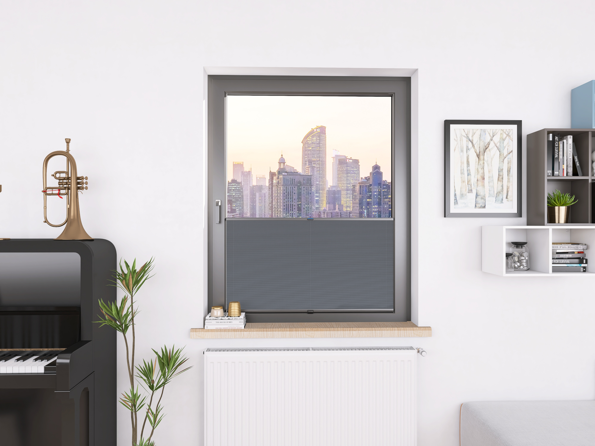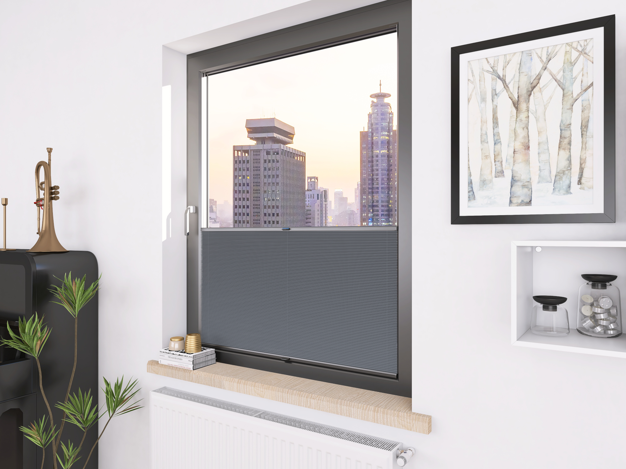 DIEGO PEARL – tkanina z powłoką odbijającą światło, gramatura 167 g/m². Transmisja światła od 0,30% do 15,62% w zależności od koloru. Eleganckie plisy (20 mm) i delikatna struktura (0,4 mm) gwarantują stylowy wygląd i wysoki komfort.
