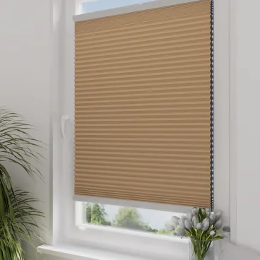 DIEGO PEARL – tkanina z powłoką odbijającą światło, gramatura 167 g/m². Transmisja światła od 0,30% do 15,62% w zależności od koloru. Eleganckie plisy (20 mm) i delikatna struktura (0,4 mm) gwarantują stylowy wygląd i wysoki komfort.