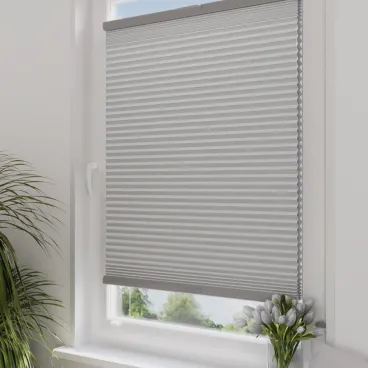 DIEGO PEARL – tkanina z powłoką odbijającą światło, gramatura 167 g/m². Transmisja światła od 0,30% do 15,62% w zależności od koloru. Eleganckie plisy (20 mm) i delikatna struktura (0,4 mm) gwarantują stylowy wygląd i wysoki komfort.