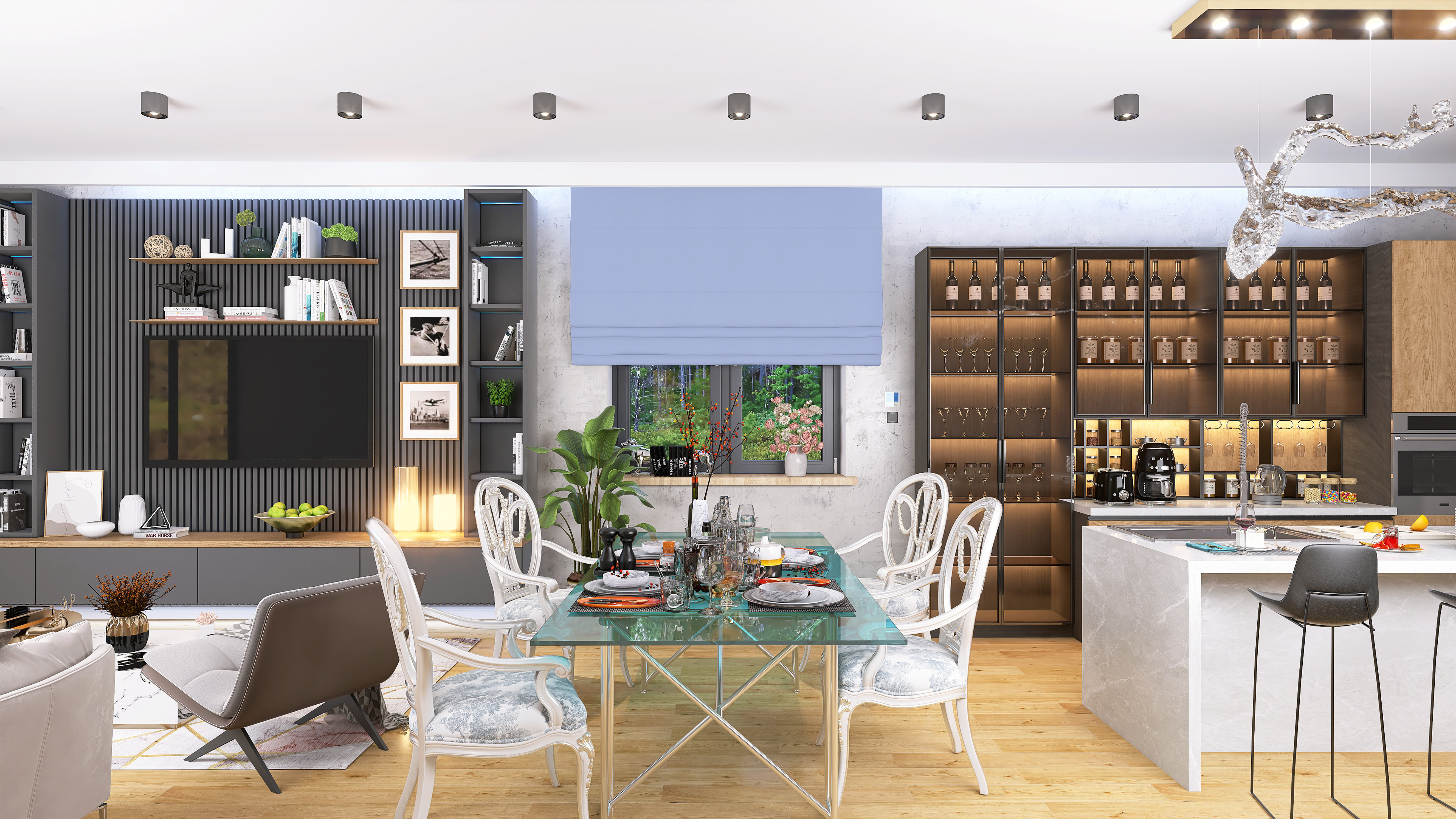 Tkanina EFE – welur poliestrowy o gramaturze 220 g/m². Zapewnia delikatne zaciemnienie (ok. 60–70%), pięknie się układa i nadaje wnętrzu ciepły, przytulny charakter. Sprawdzi się w salonie, sypialni, pokoju dziecka, a także w przestrzeniach komercyjnych, takich jak hotele czy gabinety kosmetyczne.